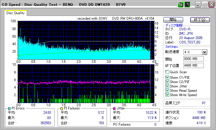 DRU-800Aの結果がちょっと不安。他のドライブでの結果は良好ですが、他にもっときれいに焼けるドライブはいくらでもあるので、ドライブを複数台持ってるのであれば、このドライブは避けた方が無難かも。