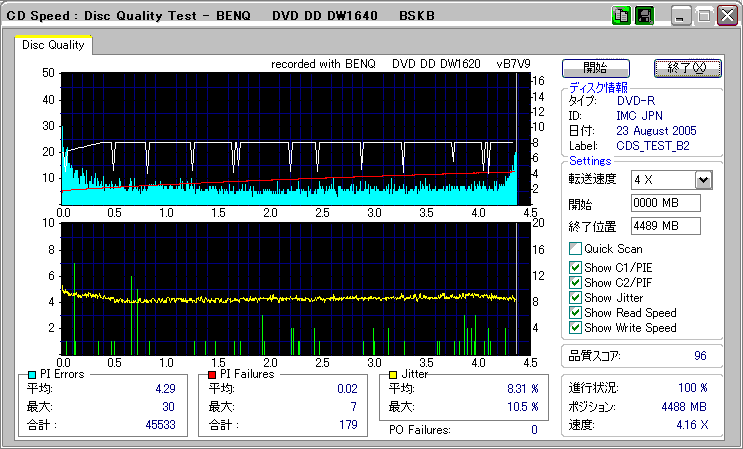 BenQ DW1640_... CDSpeed Disc quality test (8/4ECC Sum 4xCAV) |