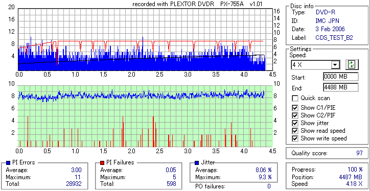 一部、相性の良くないドライブが見られますが、国産でこの値段、そしてこれだけの品質を持っていれば十分でしょう。 さすがに太陽誘電には敵いませんが、ドライブによってはmaxellや三菱を凌ぐ結果になっています。 NECドライブやプレクの755A等を所持してる方なんかには良いかもしれません。 |