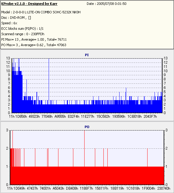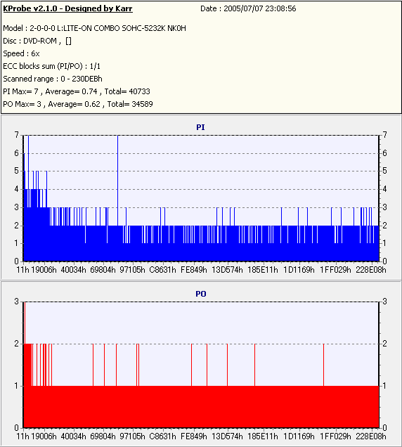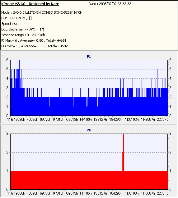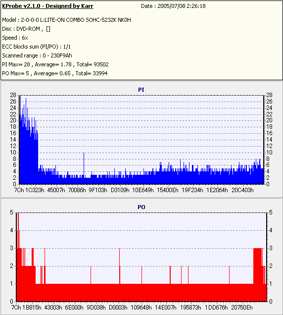 Kprobe + LITE-ON SOHC-5232Kでの1/1ECC Sum 6x CAV計測 |