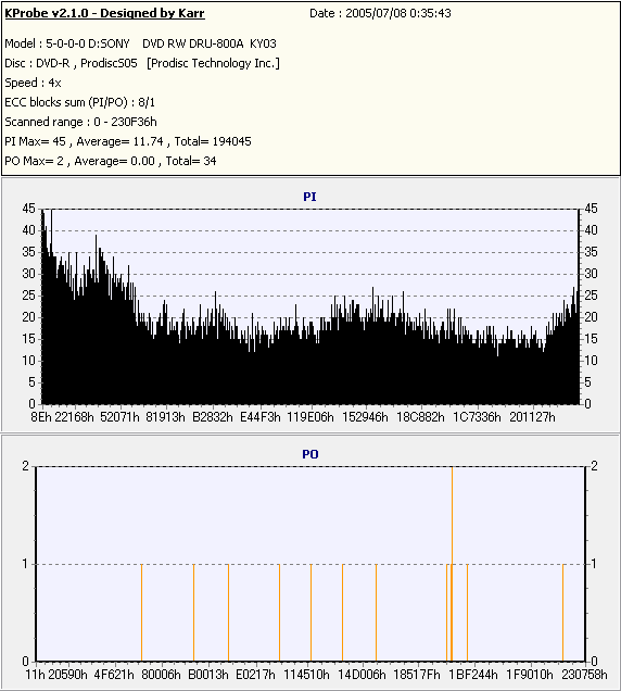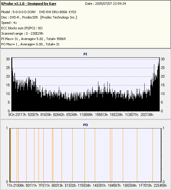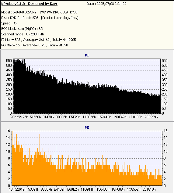 Kprobe + SONY DRU-800Aでの8/1ECC Sum 4x CLV計測 |