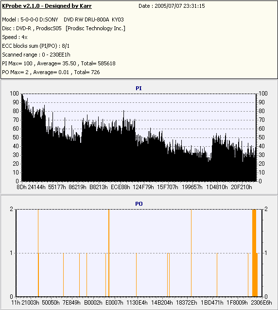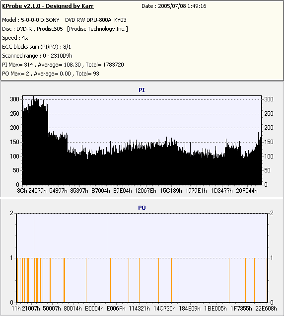 DVDInfoPro + Pioneer DVR-108のPI/PO Test(PIE/POE) |