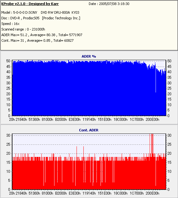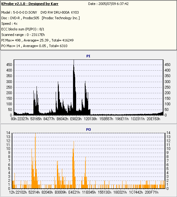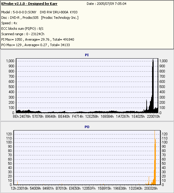 Kprobe + SONY DRU-800Aでの8/1ECC Sum 4x CLV計測 |