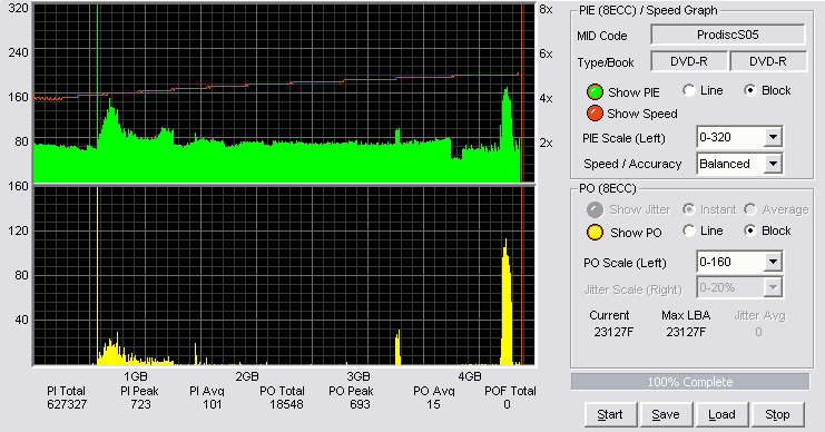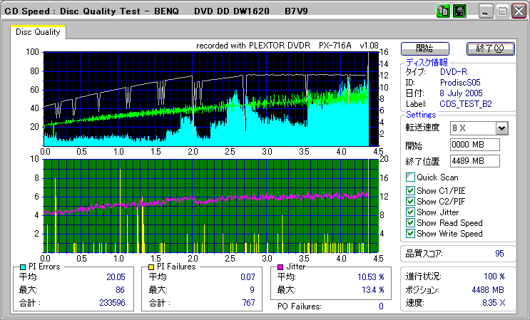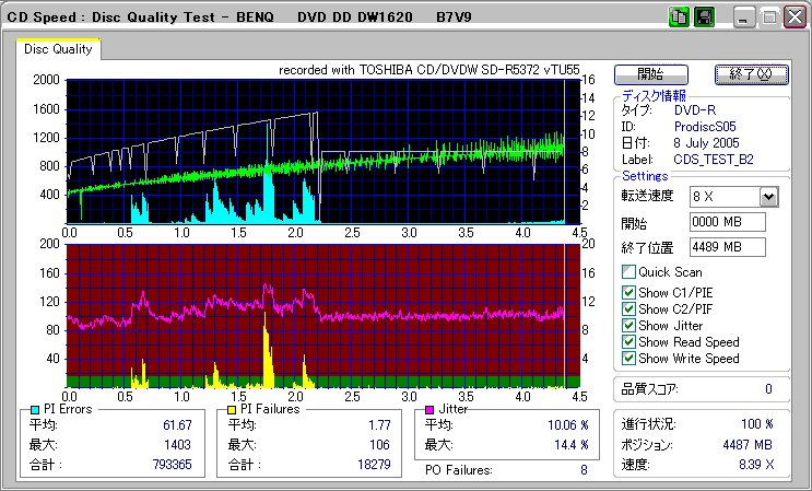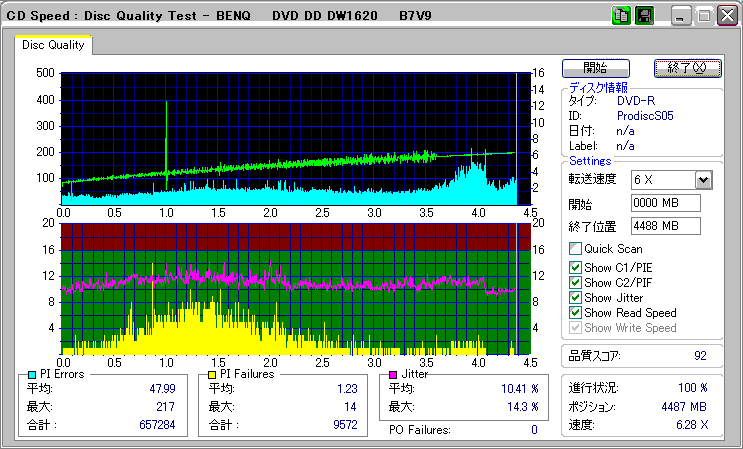 CDSpeed + BenQ DW1620Rの品質テスト(6x CAV PIE/PIF/Jitter/POF) |