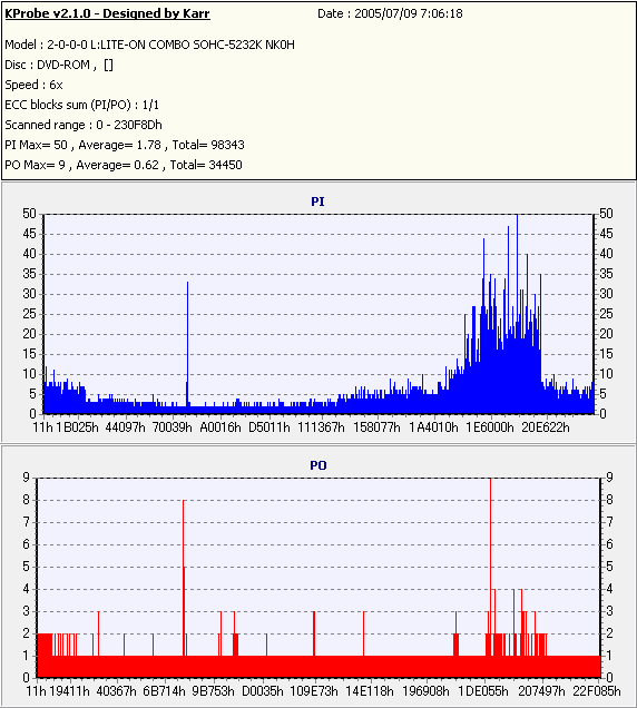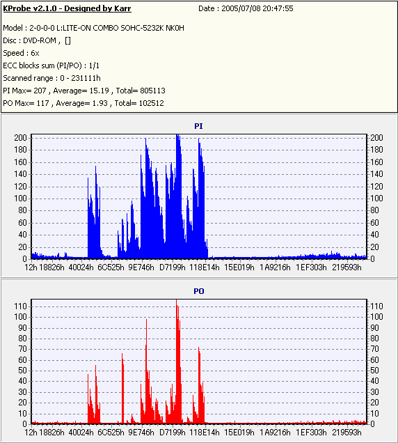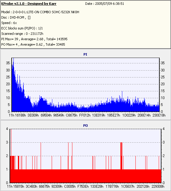 Kprobe + LITE-ON SOHC-5232Kでの1/1ECC Sum 6x CAV計測 |