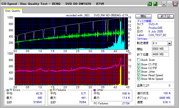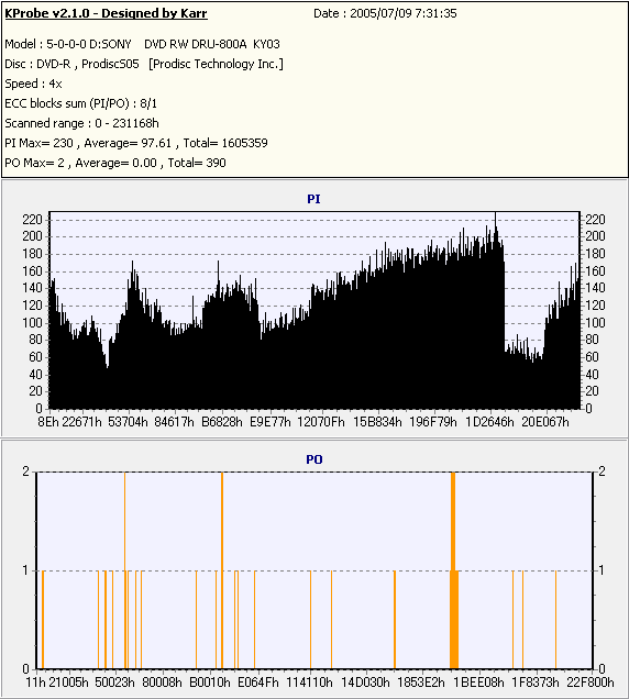 DVDInfoPro + Pioneer DVR-108のPI/PO Test(PIE/POE) |