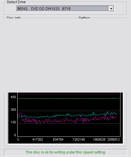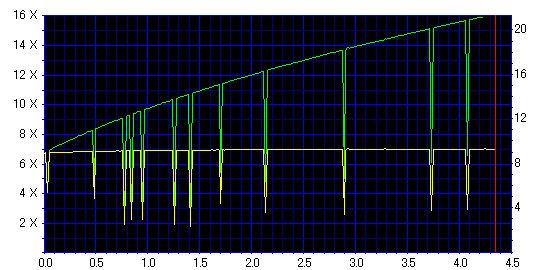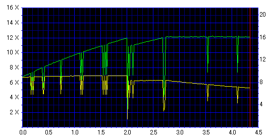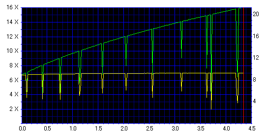 16倍焼き。ND-3500Aで難はあるが、他のドライブ…DW1620やPX-716Aあたりだとなんとか使えそうな感じ。但し、PX-716Aは結局減速してしまうようなので、最初から12倍指定くらいで焼いた方が良いかもしれない。 |