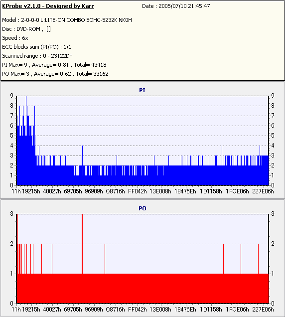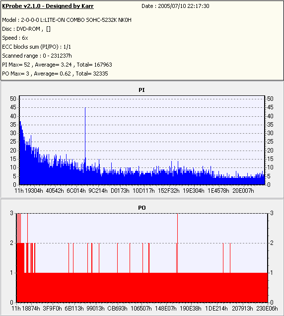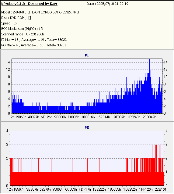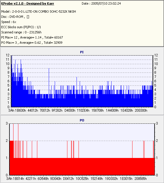 Kprobe + LITE-ON SOHC-5232Kでの1/1ECC Sum 6x CAV計測 |