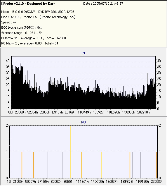 DVDInfoPro + Pioneer DVR-108のPI/PO Test(PIE/POE) |