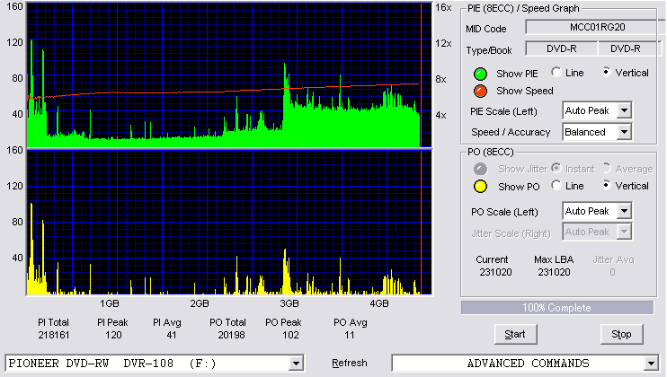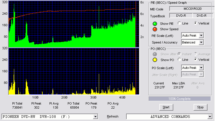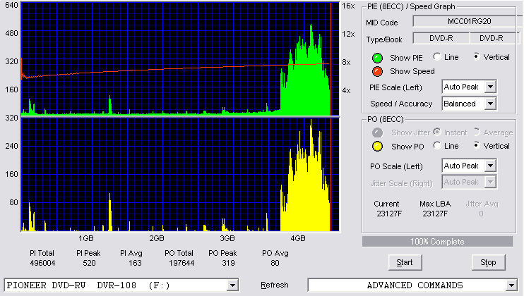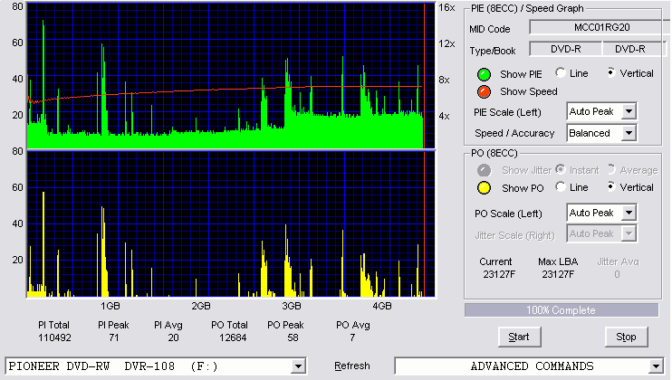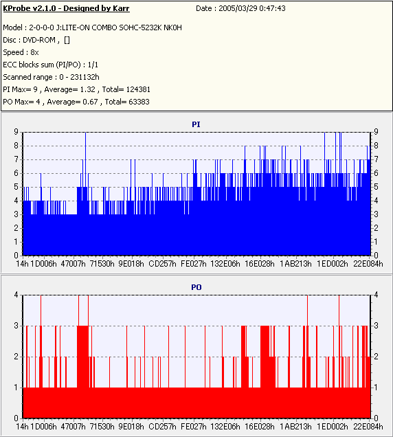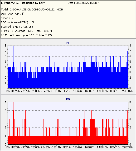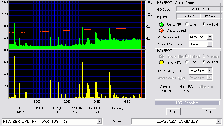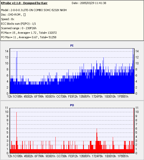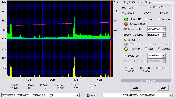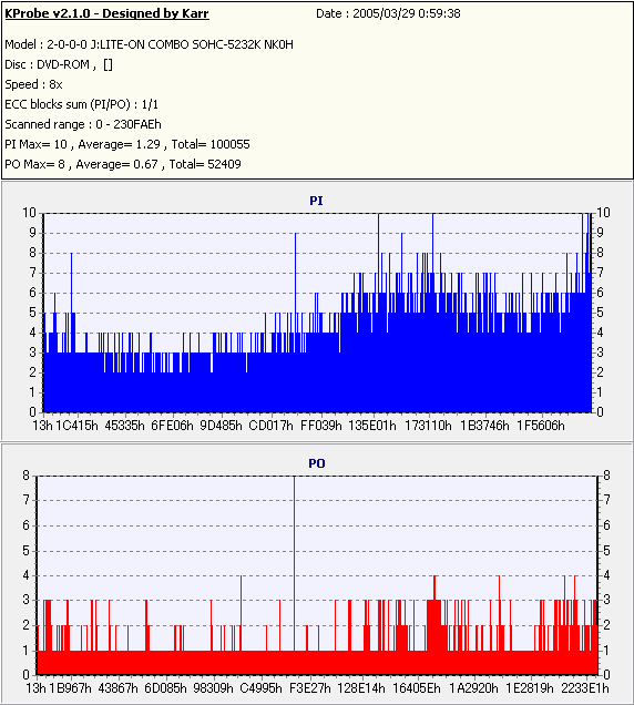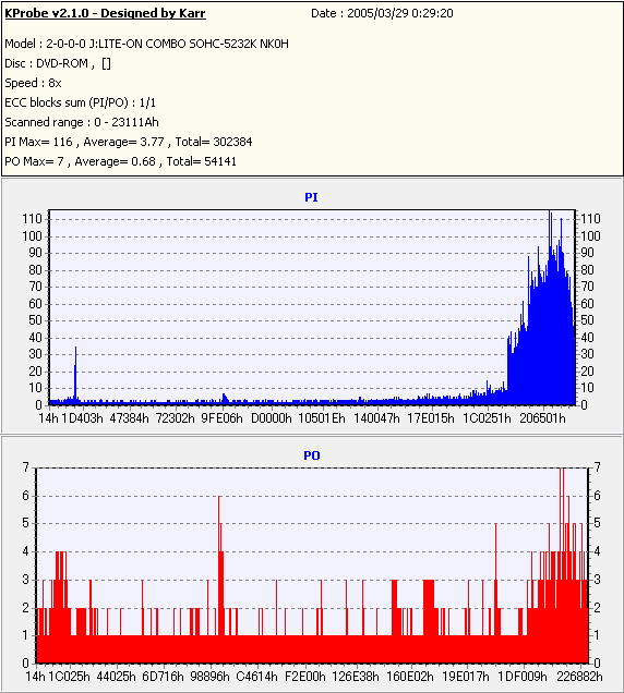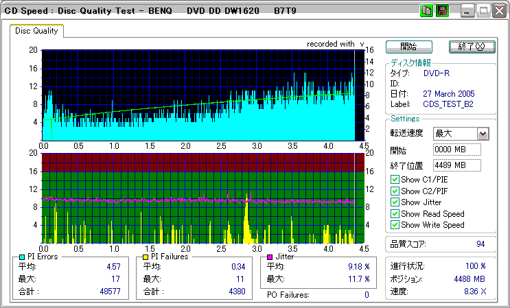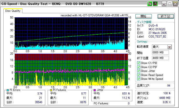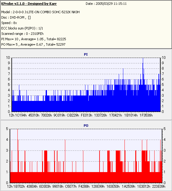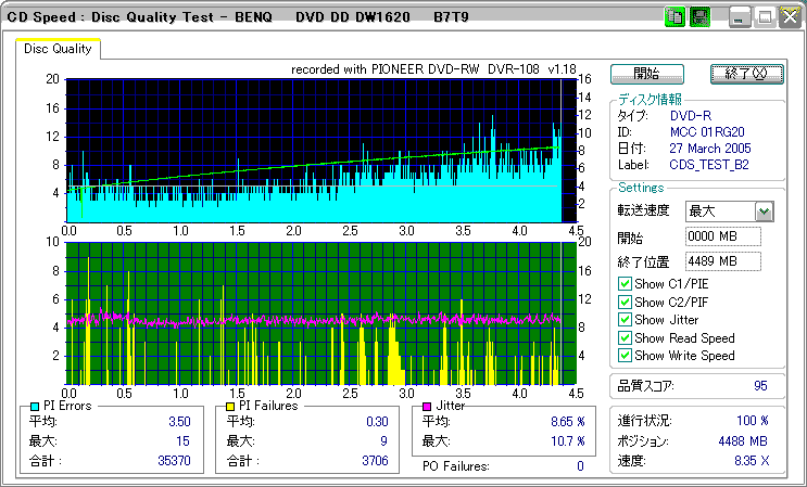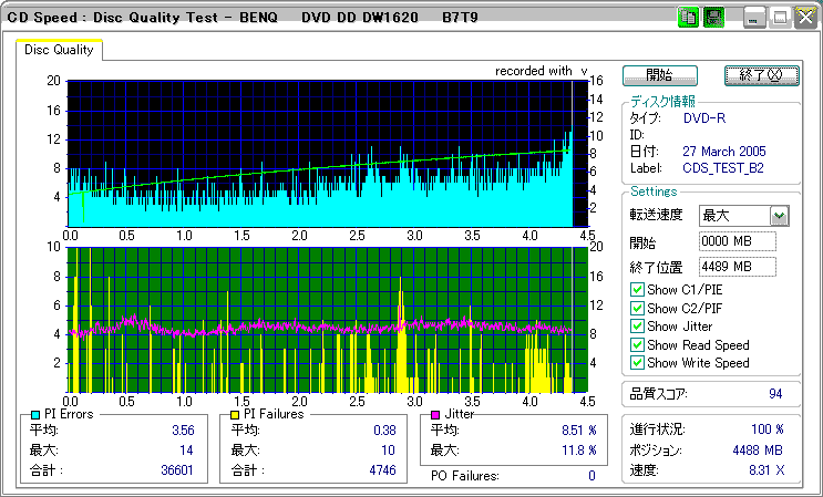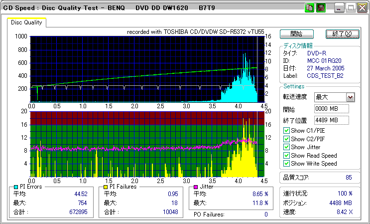 実際に焼いてみたところ、やはり三菱のIDを携えているだけあってそこそこの良品のようだが、SD-R5372ではPOFを吐いてしまっている。 |