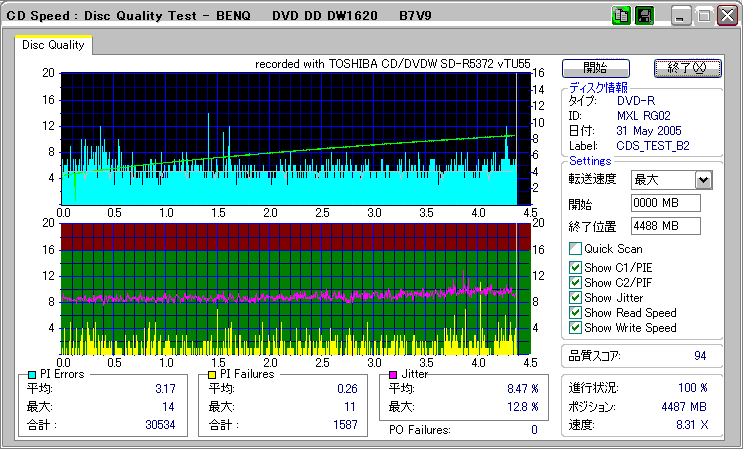 中身はmaxell製で、全体的に相性も少なく良好な結果となっている。4倍に関して言えば、初期のmaxellは太陽誘電よりも上かもしれない。 |