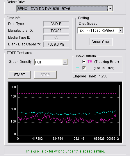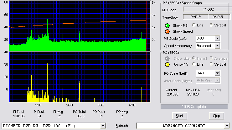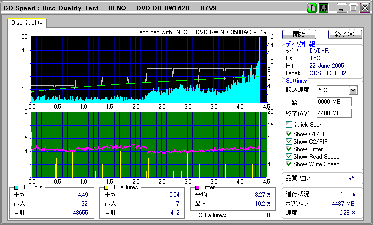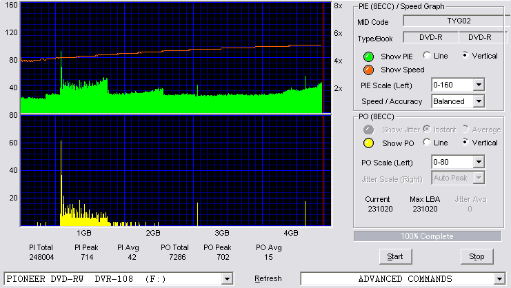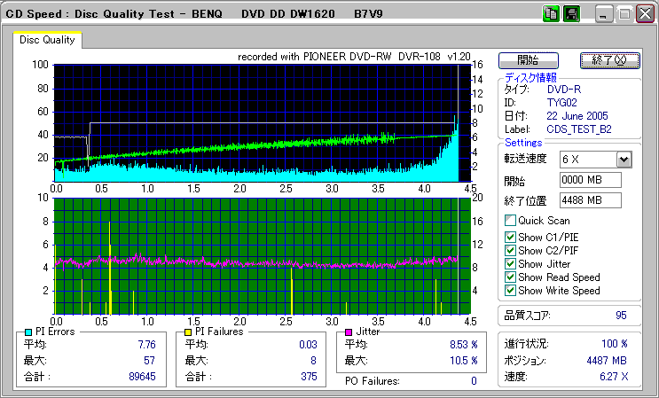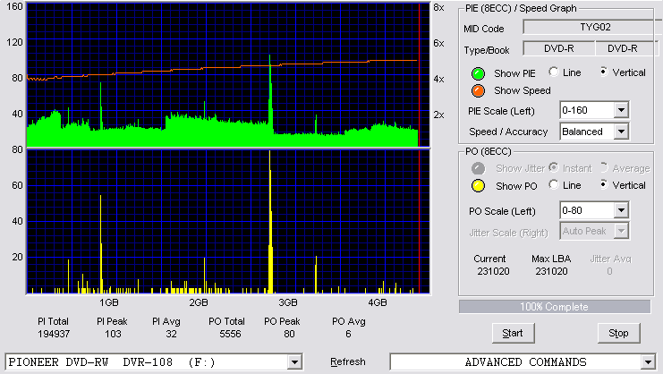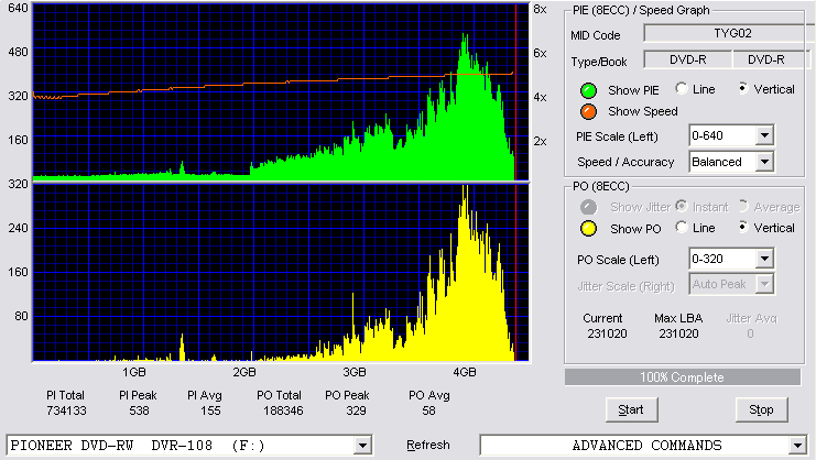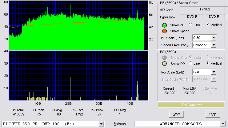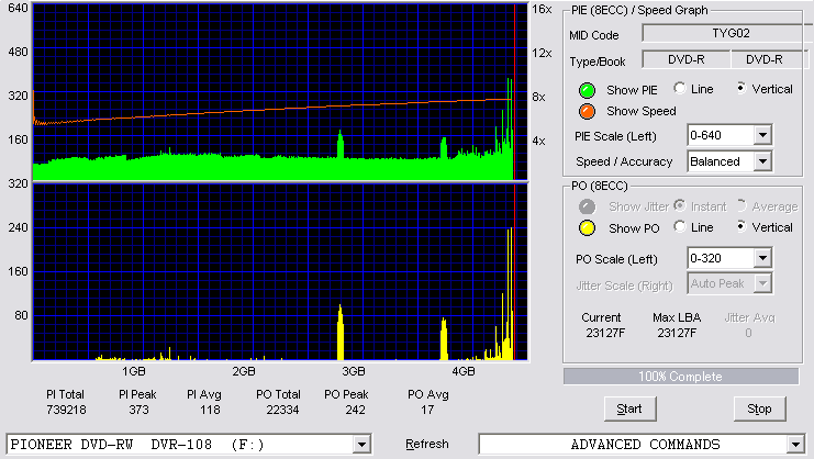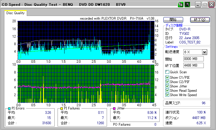 PlexTools Professional + PLEXTOR PX-716AのPI/PO 8ECC Sum Test(速度2 クリックで詳細表示) ![]() PlexTools Professional + PLEXTOR PX-716AのTA Test(クリックで詳細情報を表示) ![]() ![]() ![]() CDSpeed + BenQ DW1620Rの品質テスト(6x CAV PIE/PIF/Jitter/POF) ![]() DVDInfoPro + Pioneer DVR-108のPI/PO Test(PIE/POE) |