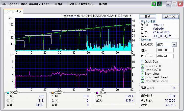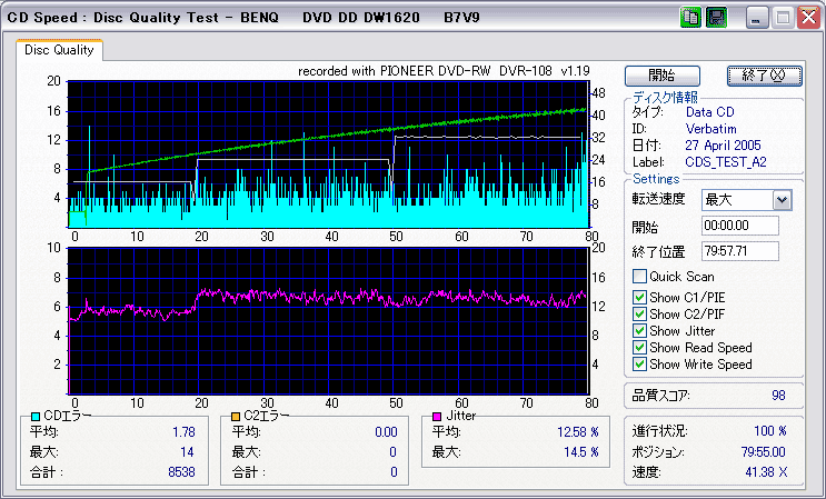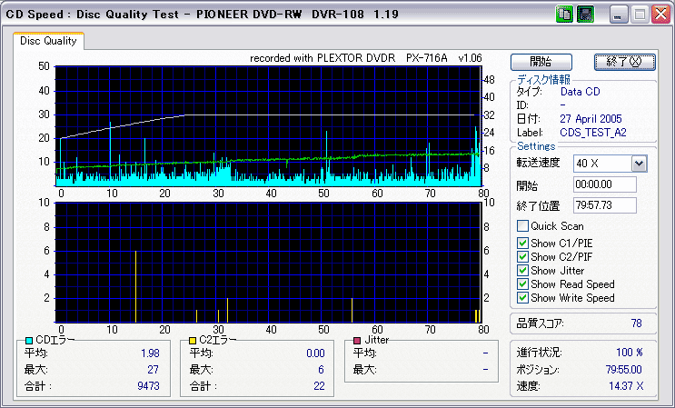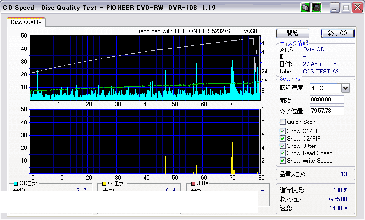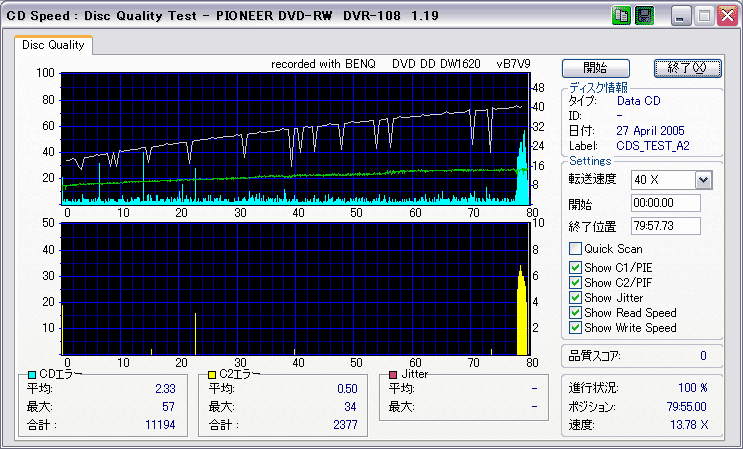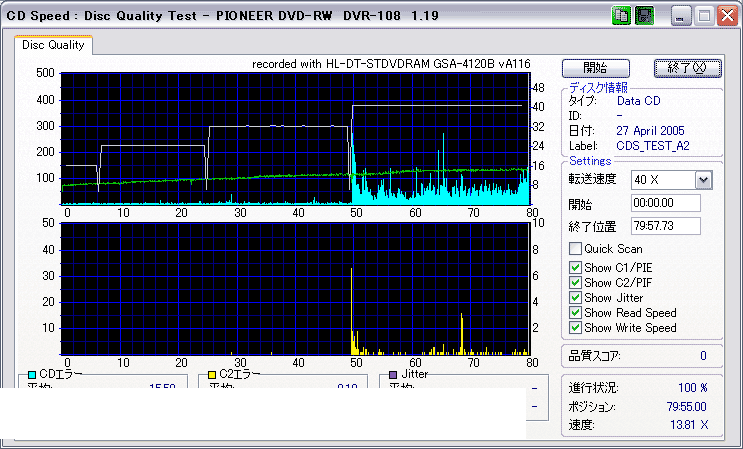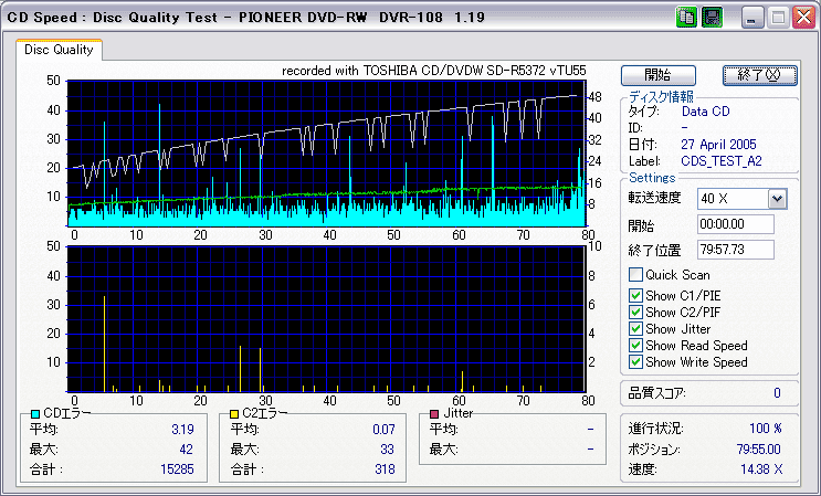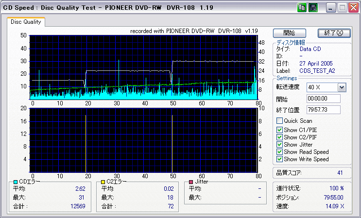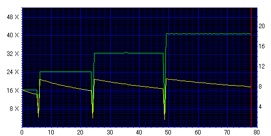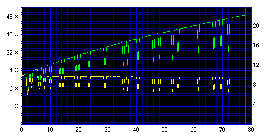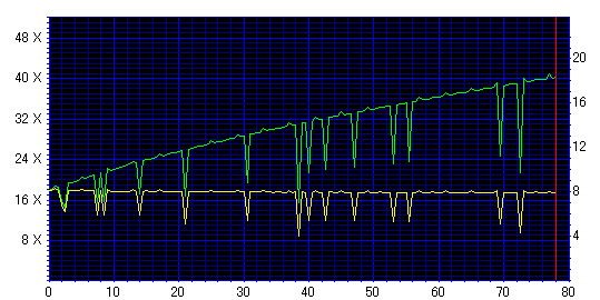 40倍速への切り替え地点でエラー値もJitterも急上昇。32倍で焼いた方がよさげ。 |