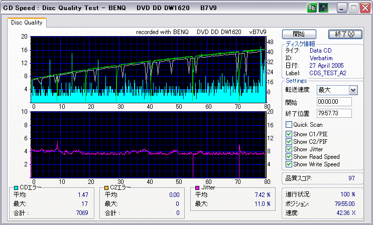 やはDW1620RはCD-Rの焼き品質がかなり高そう。全体的にエラーもJiteerも低め。