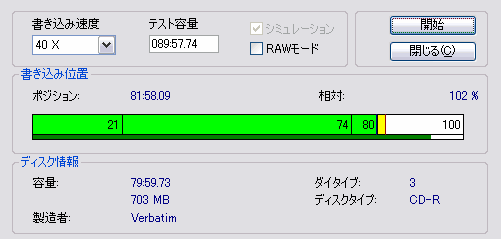 元々CD-Rの焼き品質があまり良くないドライブなので、まあ良いんじゃないかと。 |