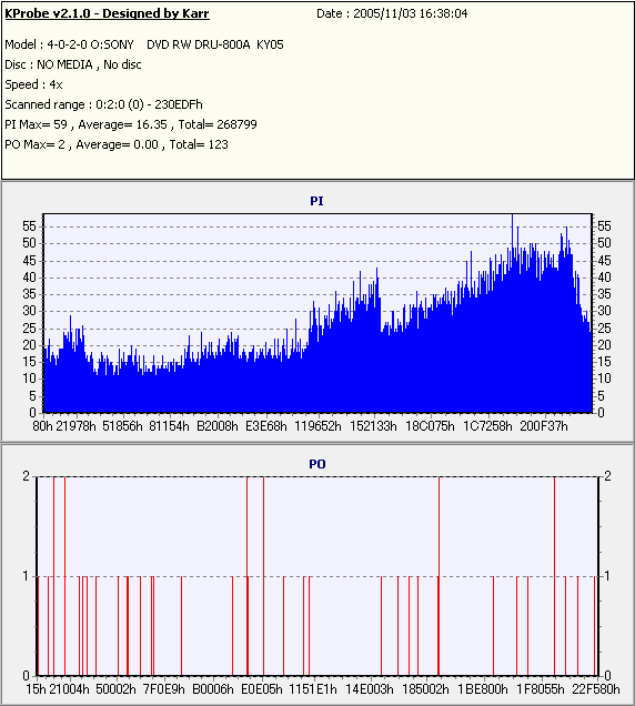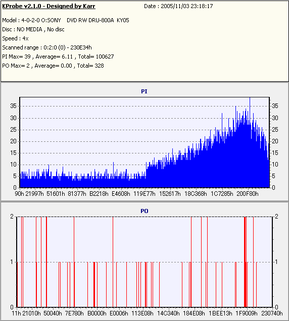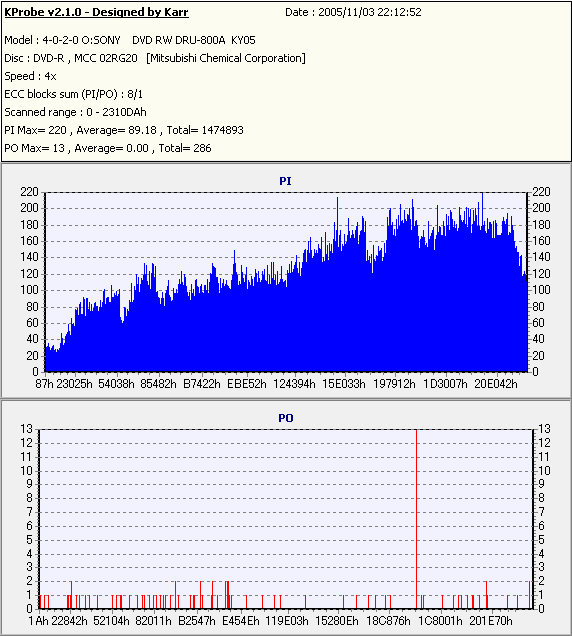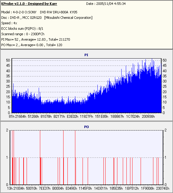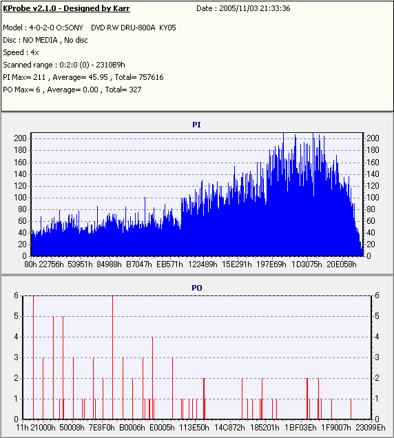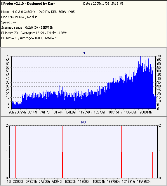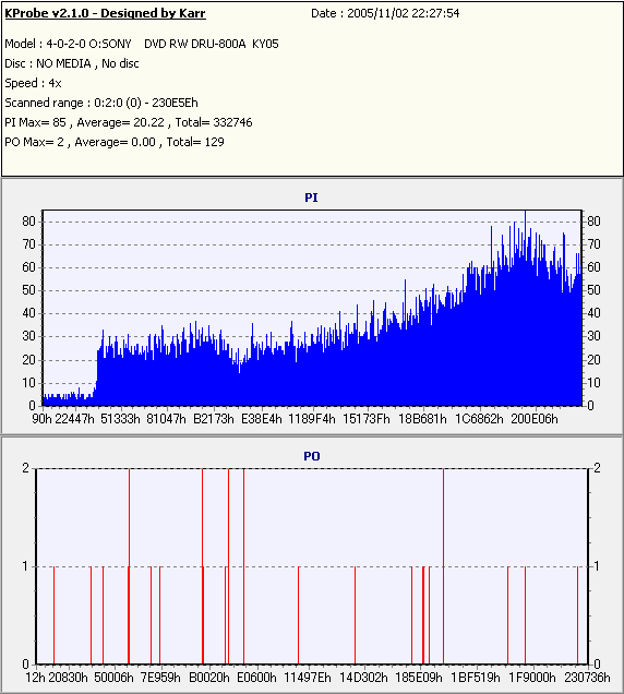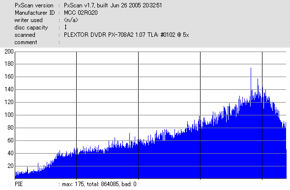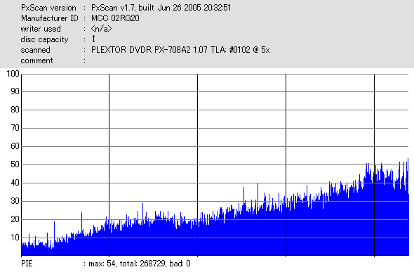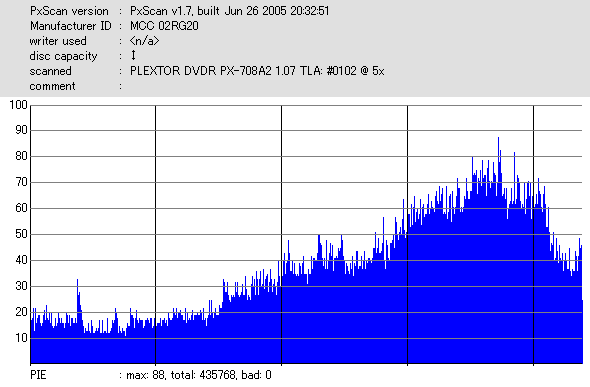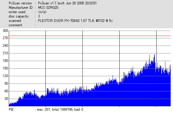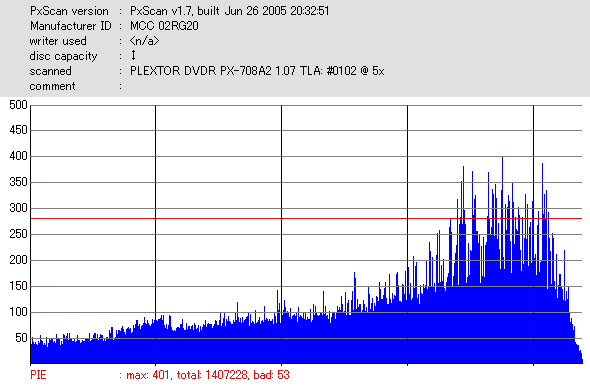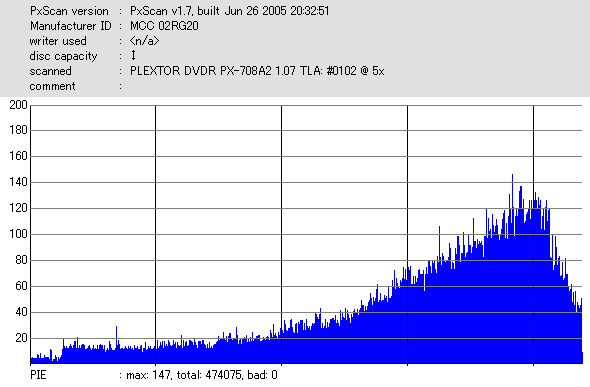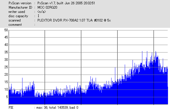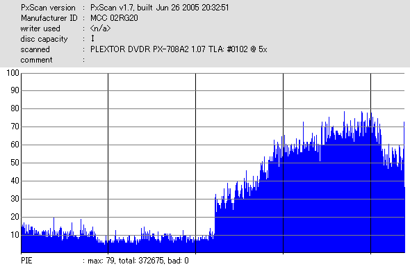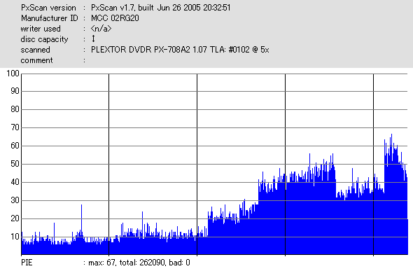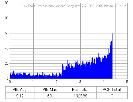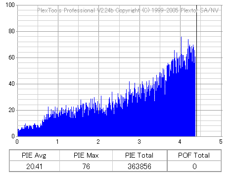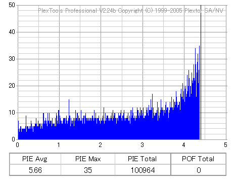 やはり外周でエラーが増える傾向にあります。 これくらいなら問題ないんですが、これくらいじゃ済まないドライブの場合は…… |