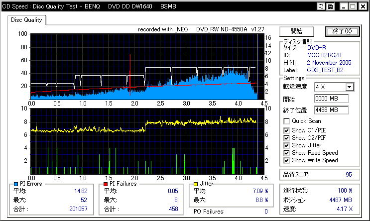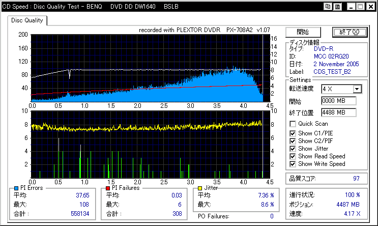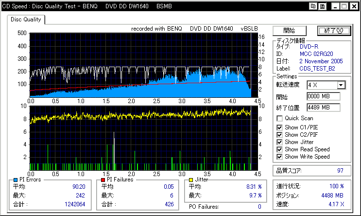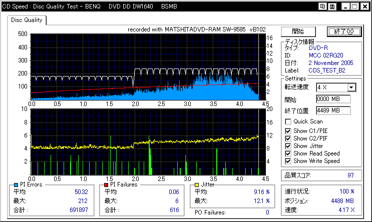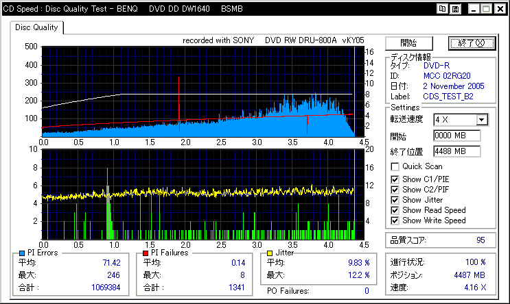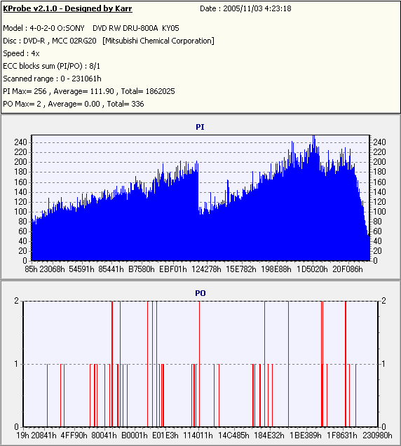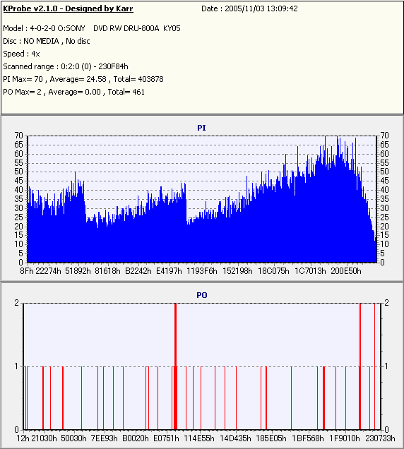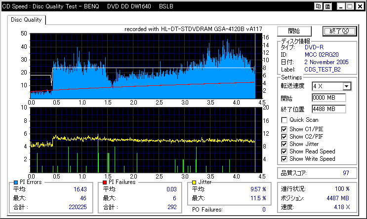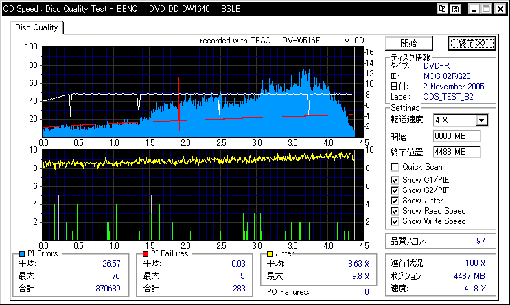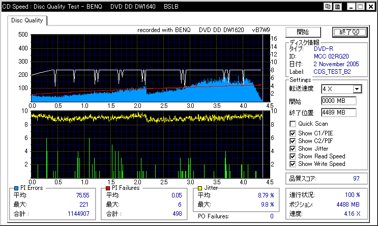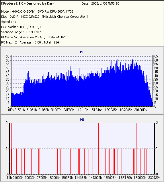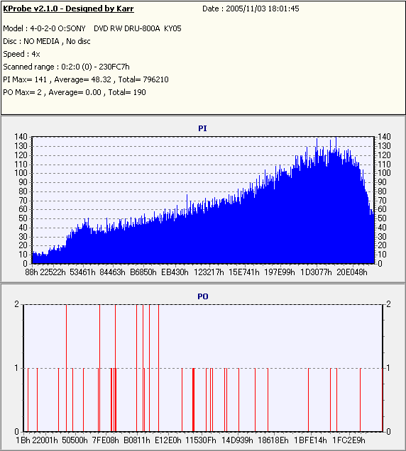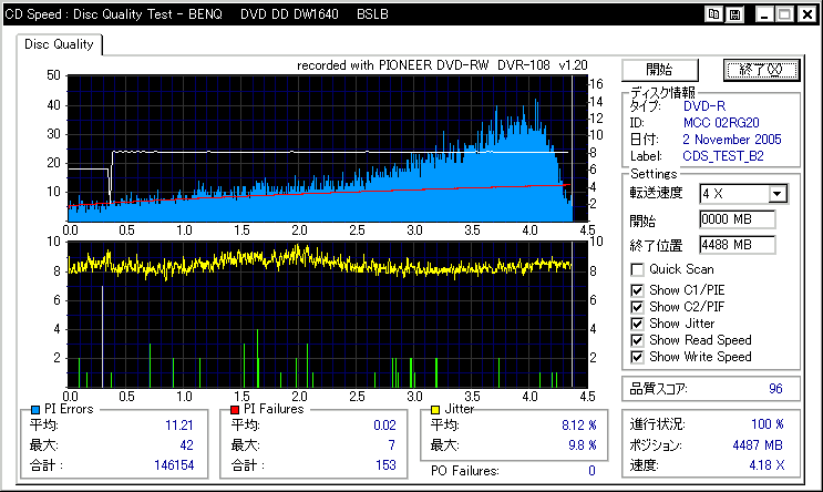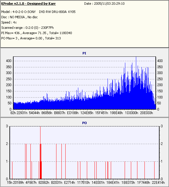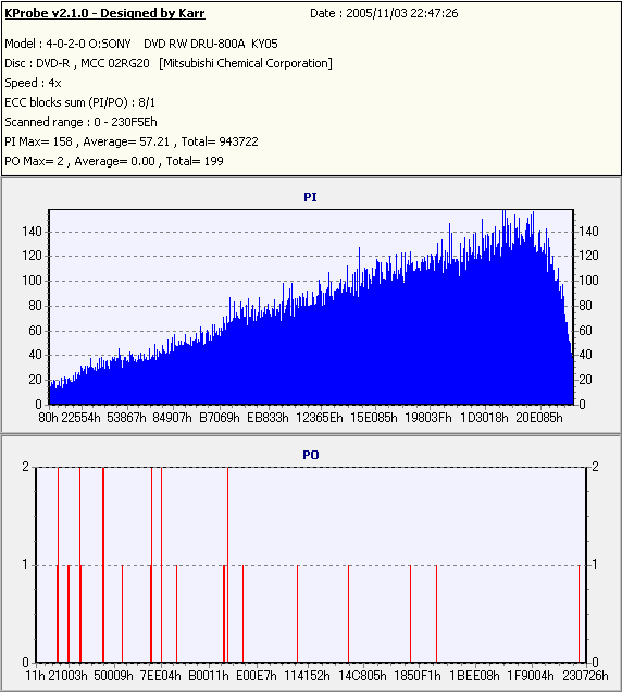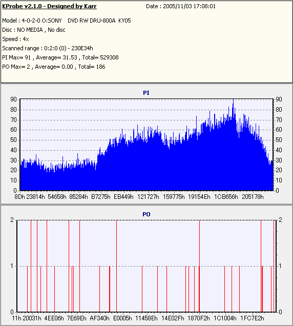 やはり外周でエラーが増える傾向にあります。 これくらいなら問題ないんですが、これくらいじゃ済まないドライブの場合は…… |