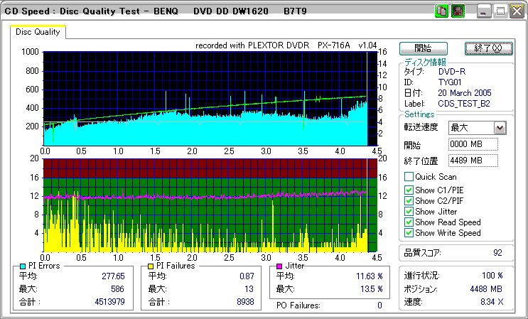 ![]() ![]() 何故か太陽誘電のIDが振られているZEROのDVD-R。 ND-3500AやPX-708A2では速度違反ができてしまうとても恐ろしいメディア。 焼いてみた結果…… やはり太陽誘電とは程遠い結果に。 製造元がやっている事とはいえ、リーダーメディアテクノ側もこんなものを販売してて良いのだろうか。 どうも造りがInteraxiaやSKC等のメディアと酷似している気がするので、破壊実験を行なってみた。 破壊検査の結果 |
