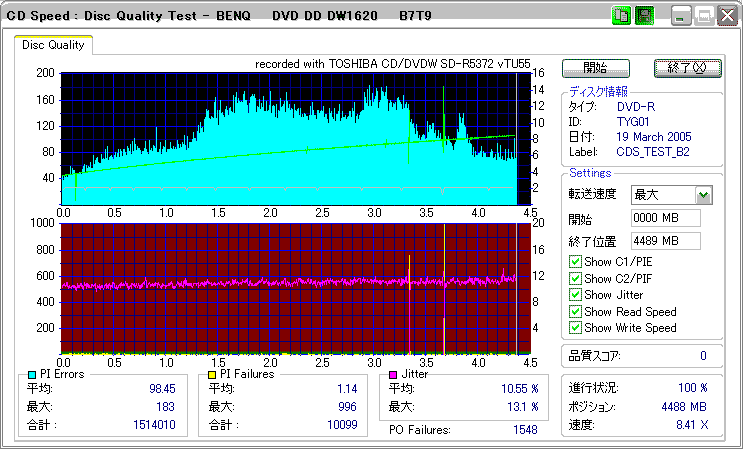![]() ZERO DVD-R 4x Manufacturer ID:"TYG01" OEM元不明 対応倍速:1-4x ![]() |