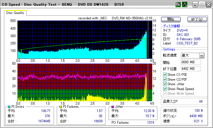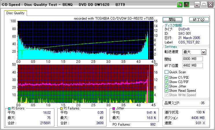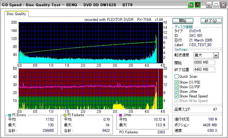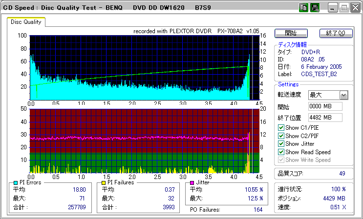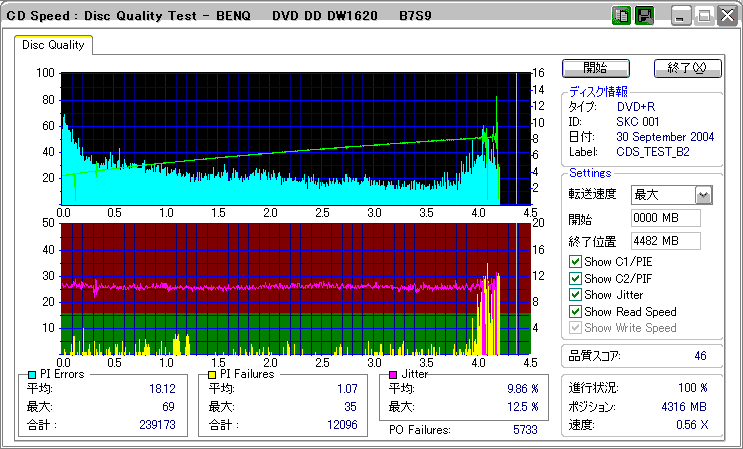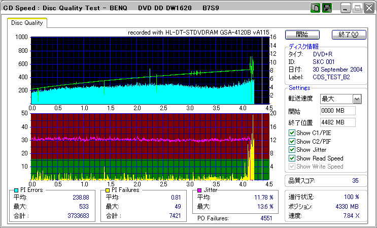 そしてCDSpeedの表示を見てみると、ID部分がぶっ壊れている。