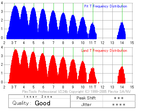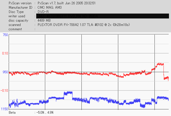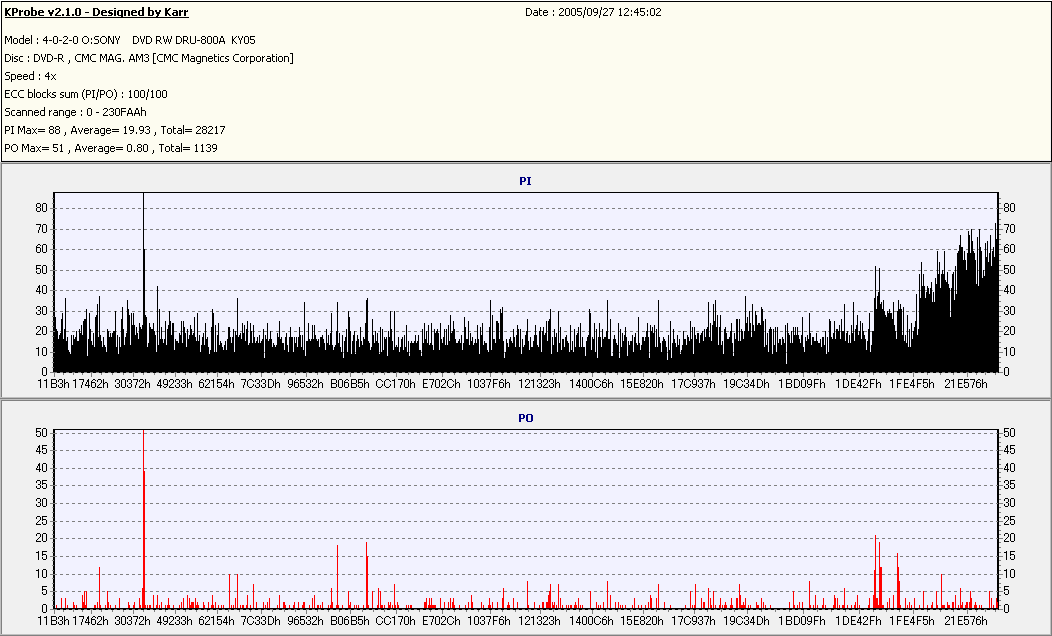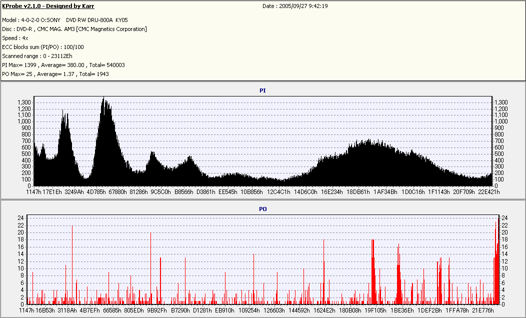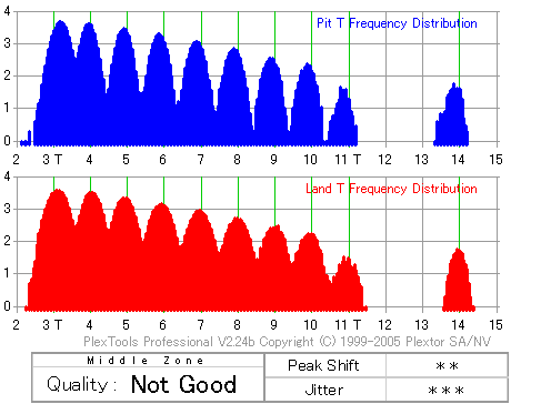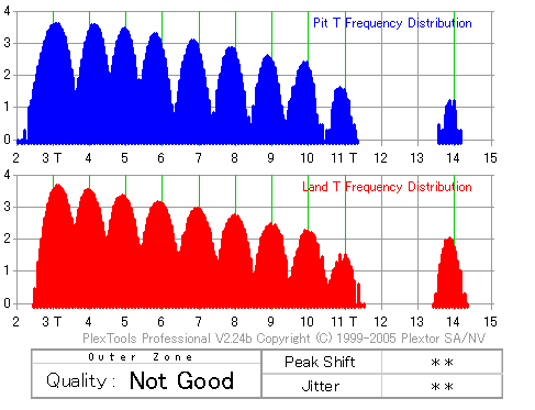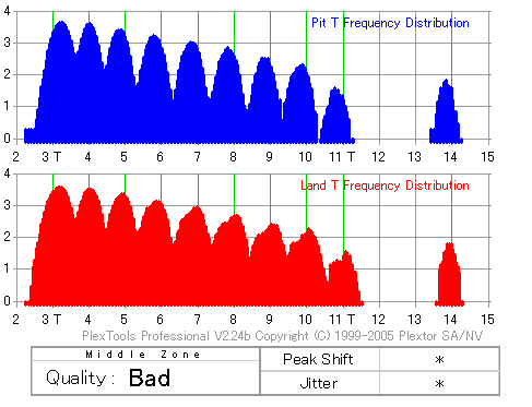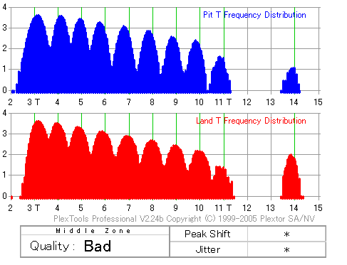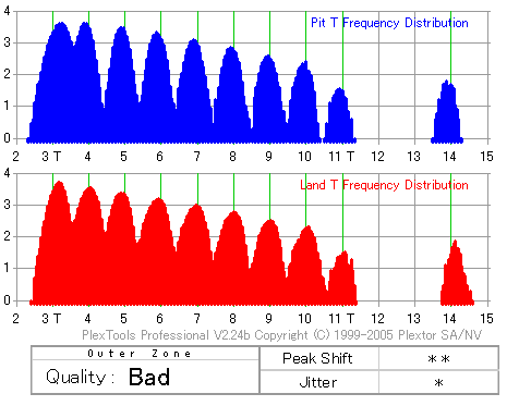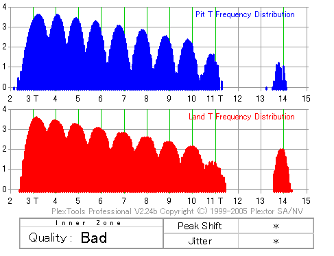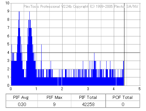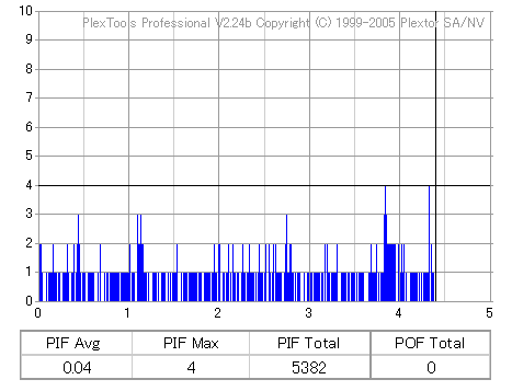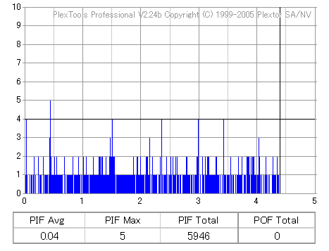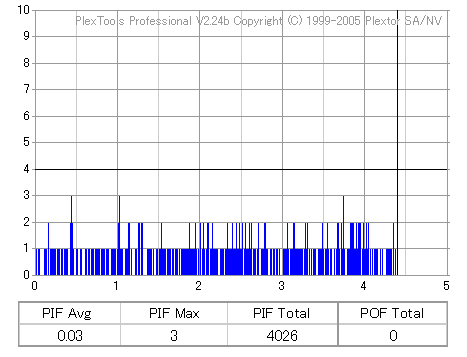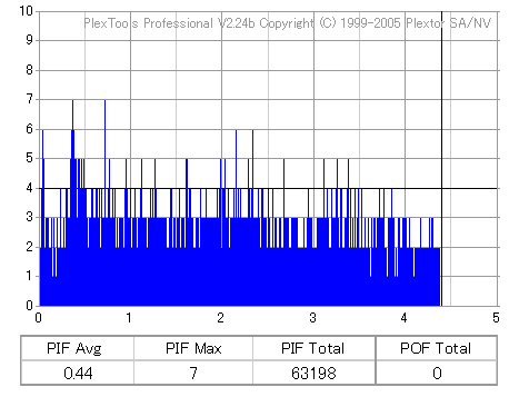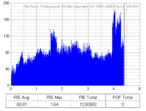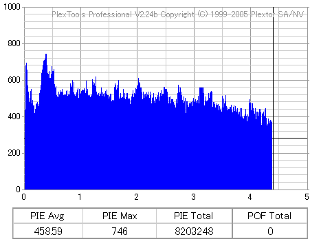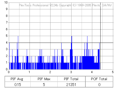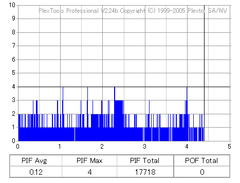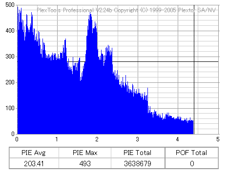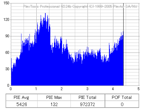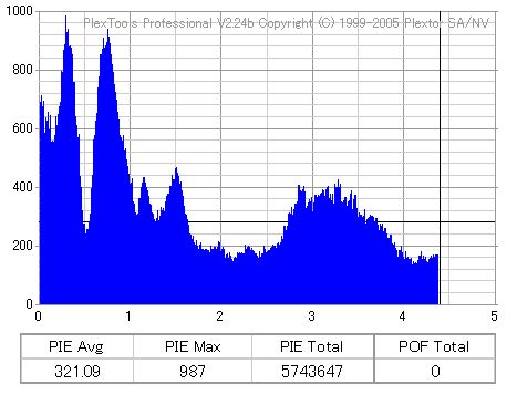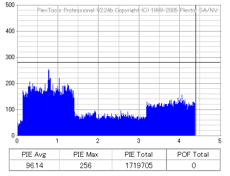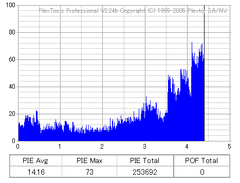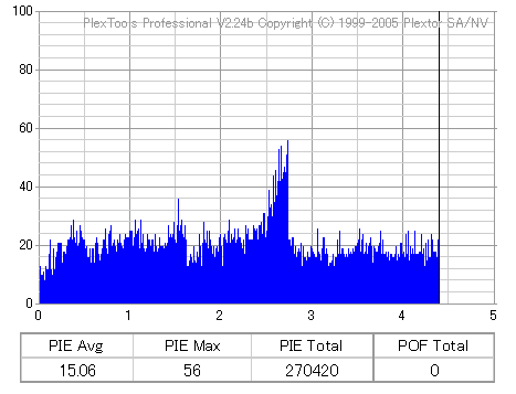 外周でエラーが増える傾向にありますが、他のドライブと比較するとまあ比較的使えなくもないかといった感じ。 但し決して良い結果なわけではなく、焼きも不安定なのでできれば12倍くらいに抑えた方が無難かも。 |