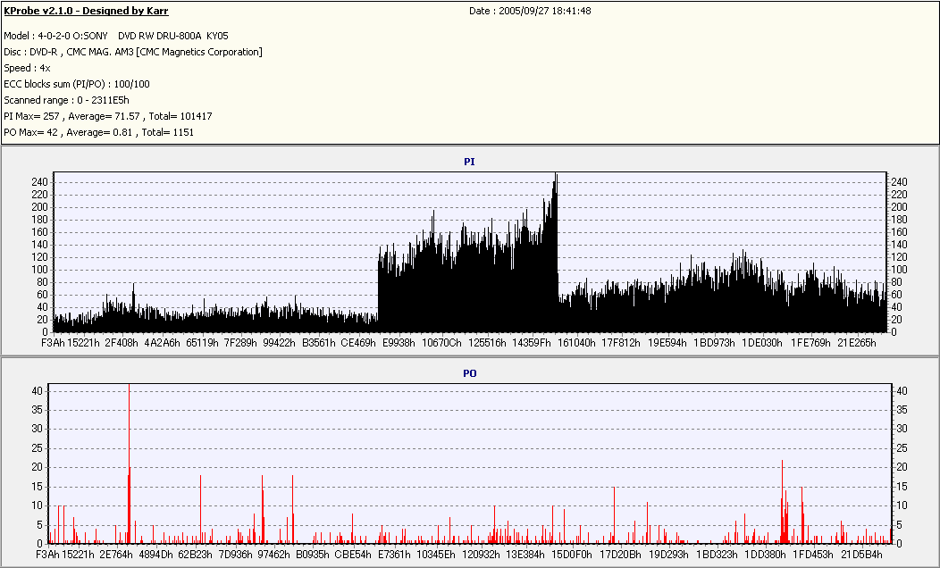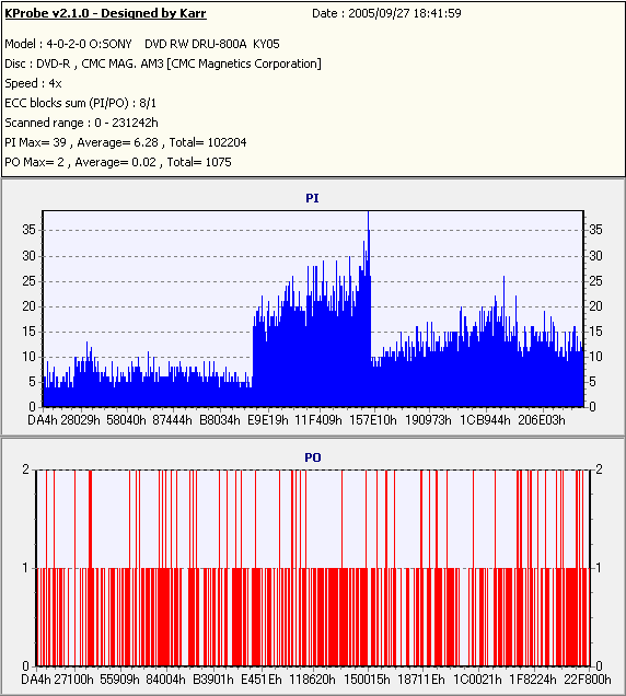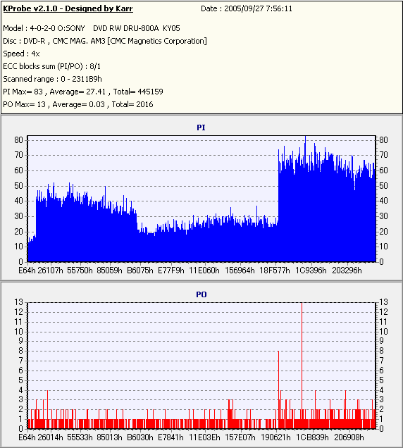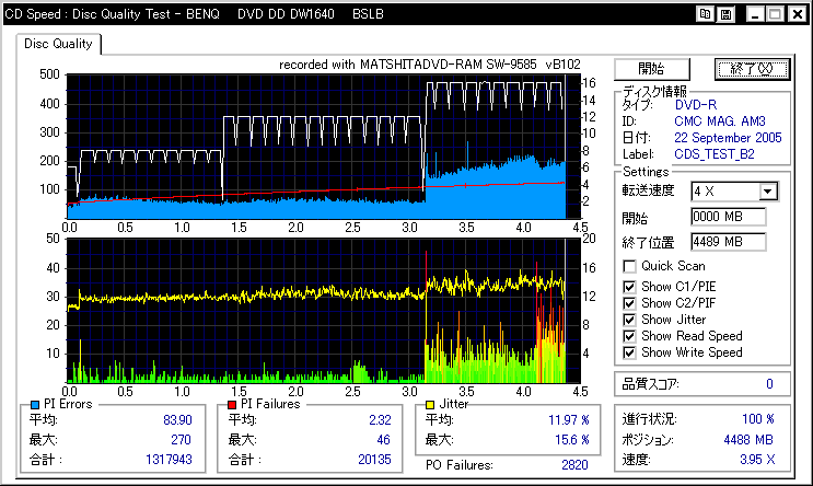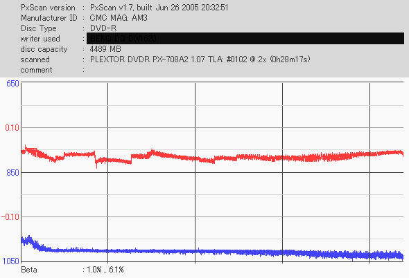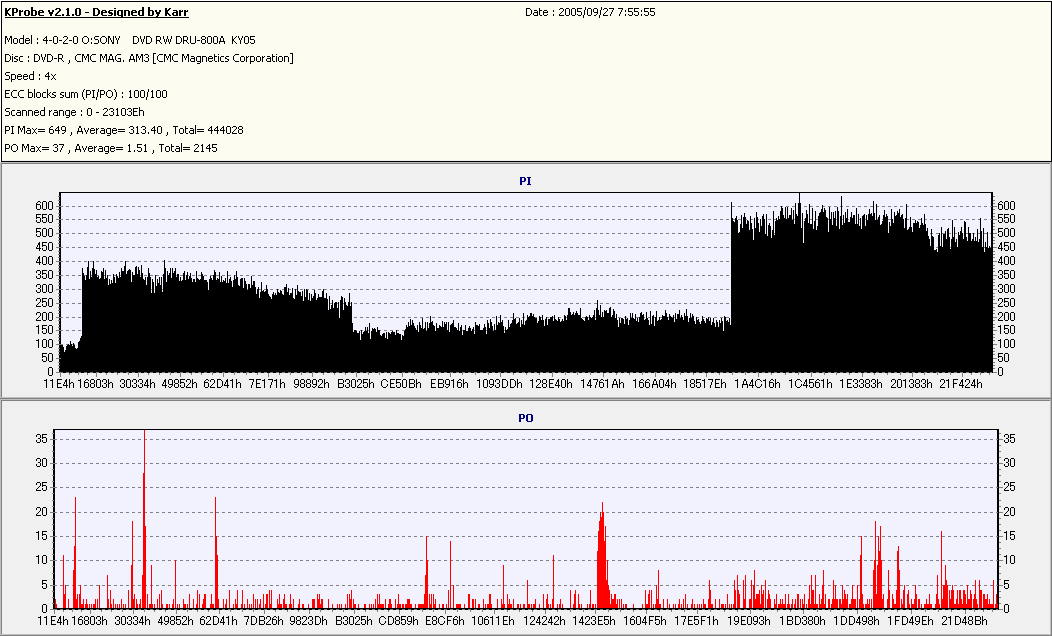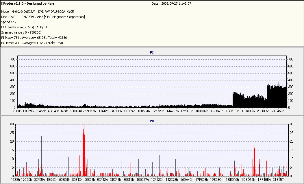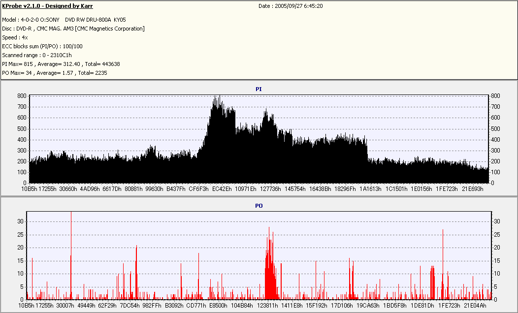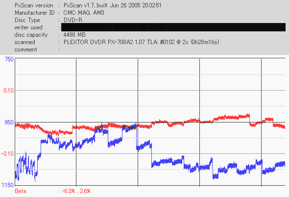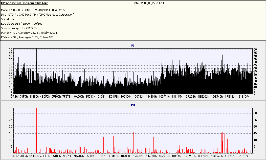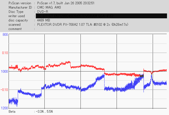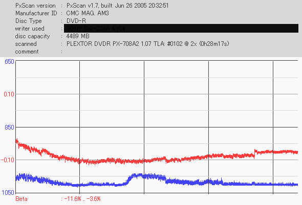 外周でエラーが増える傾向にありますが、他のドライブと比較するとまあ比較的使えなくもないかといった感じ。 但し決して良い結果なわけではなく、焼きも不安定なのでできれば12倍くらいに抑えた方が無難かも。 |