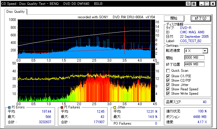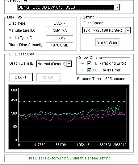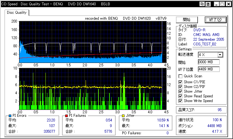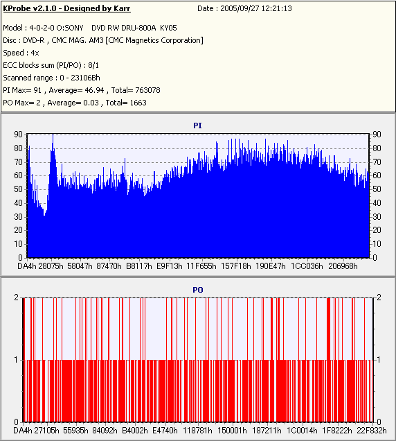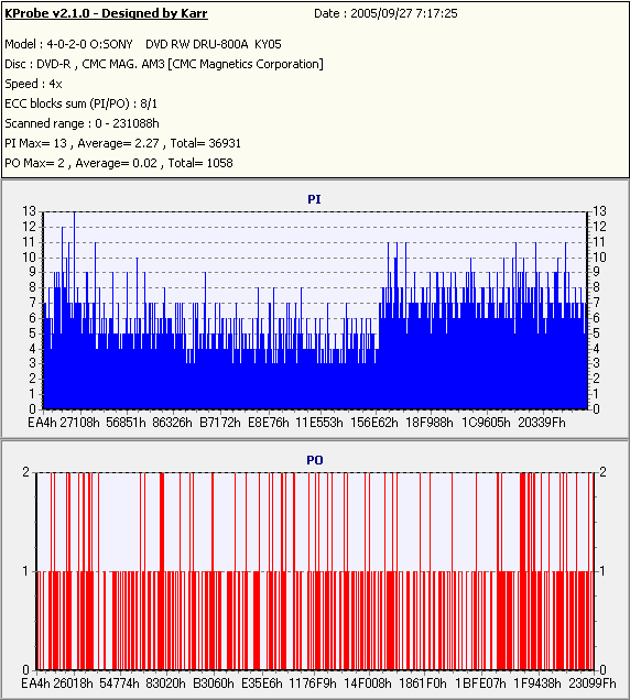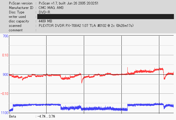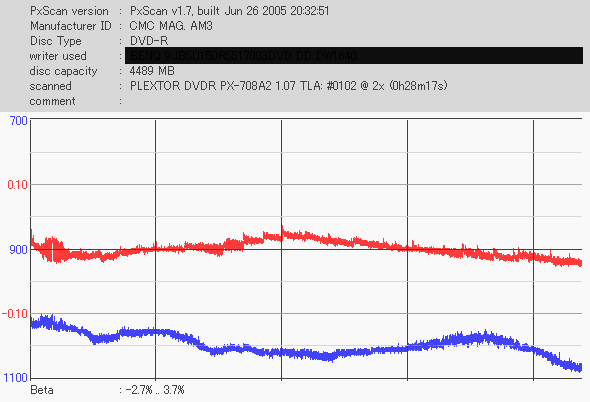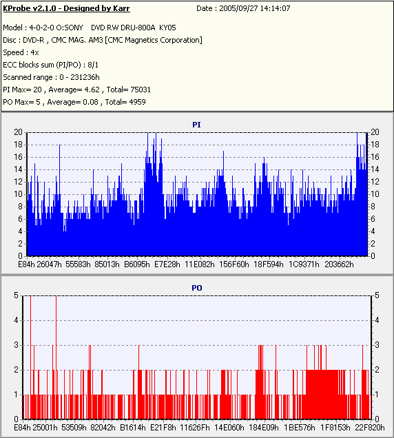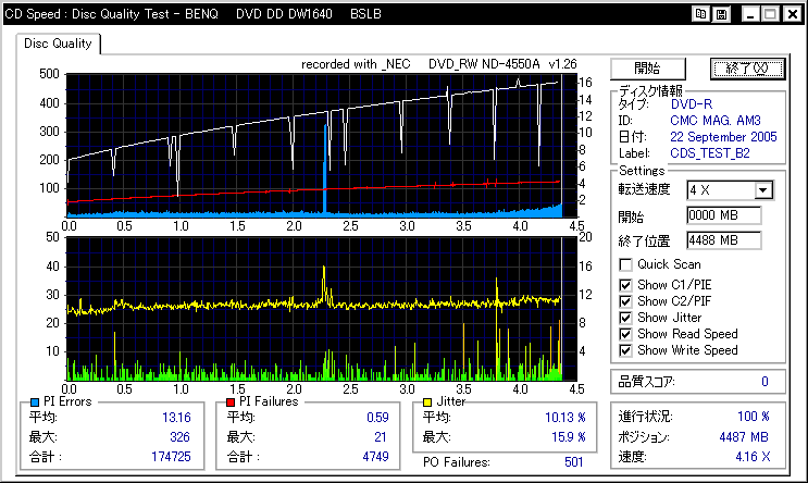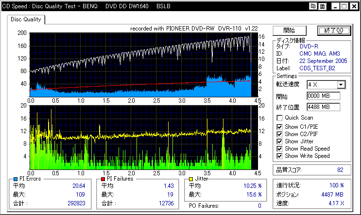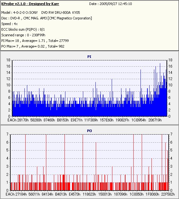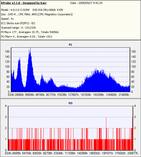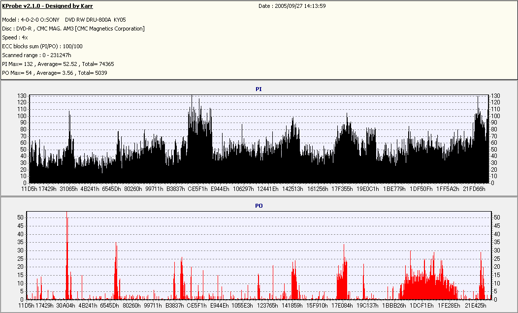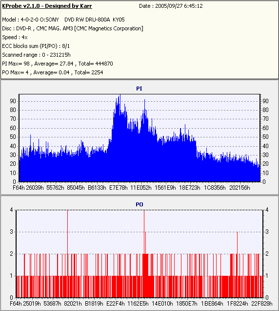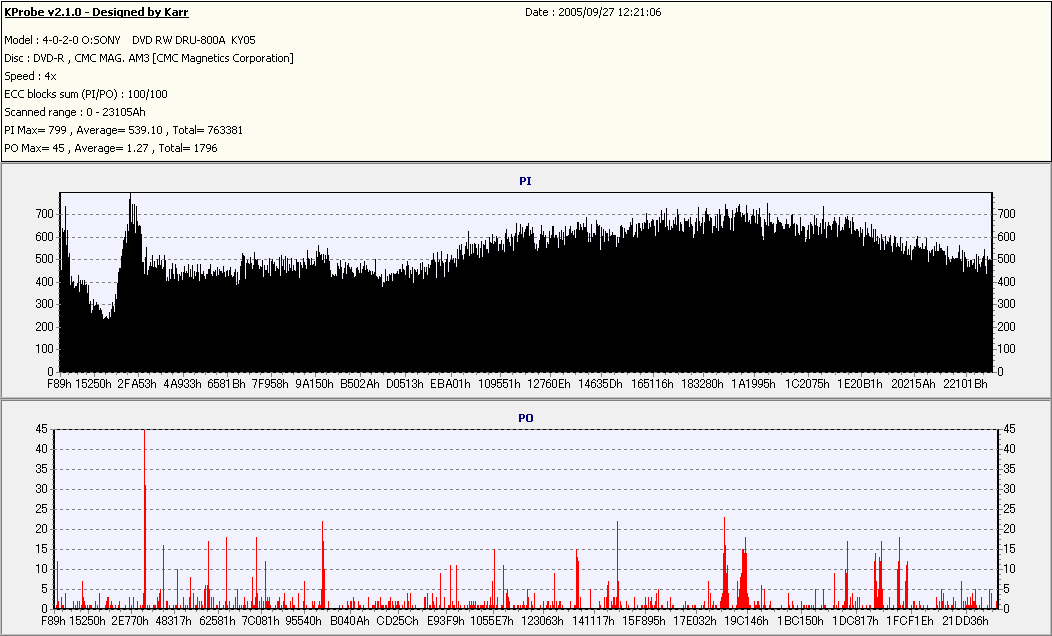 外周でエラーが増える傾向にありますが、他のドライブと比較するとまあ比較的使えなくもないかといった感じ。 但し決して良い結果なわけではなく、焼きも不安定なのでできれば12倍くらいに抑えた方が無難かも。 |