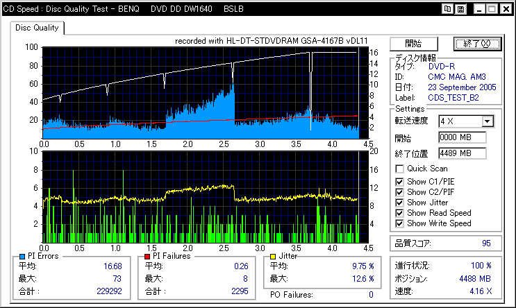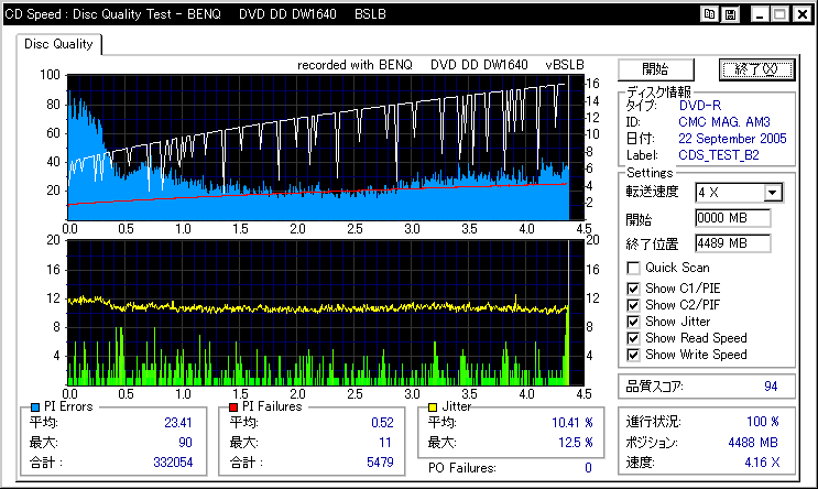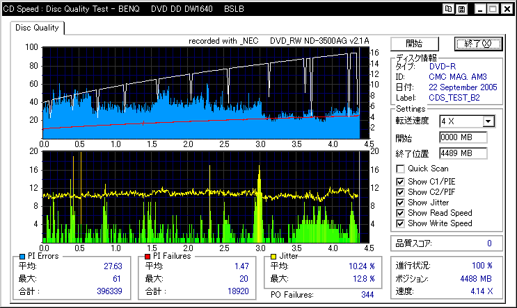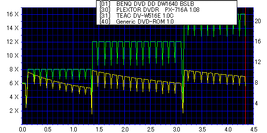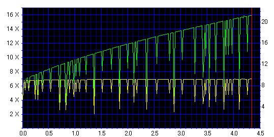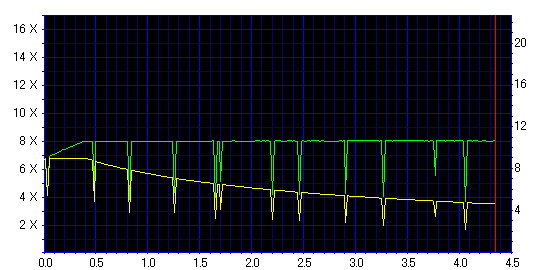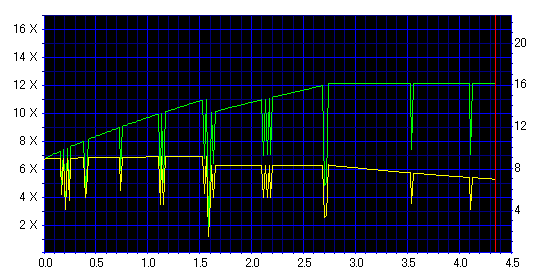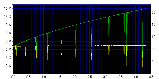 8倍速領域と16倍速領域がややエラー高めです。特に16倍領域が悪そうなんで、12xに抑えた方が良いかも。 |