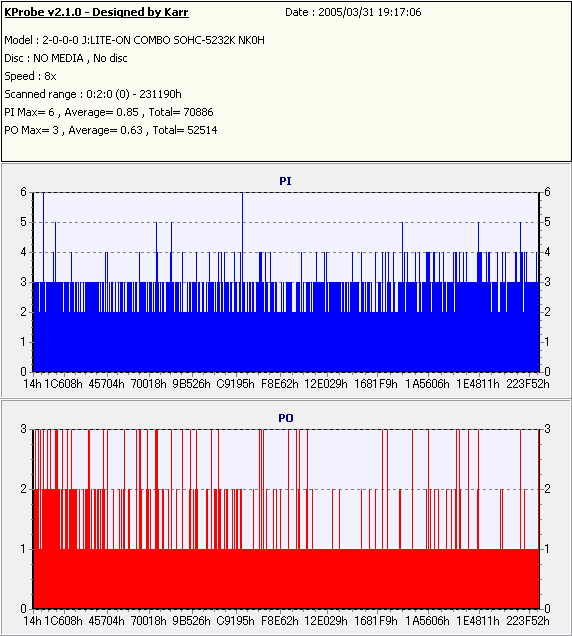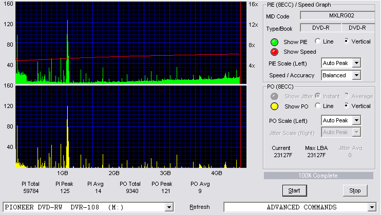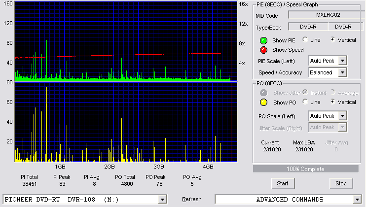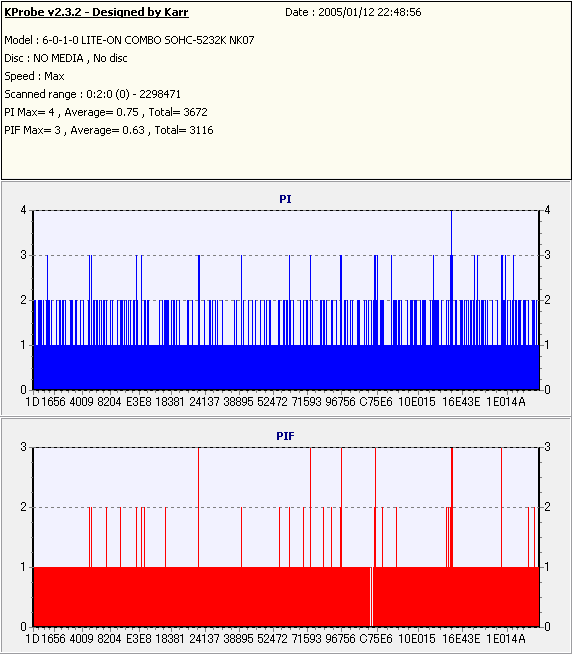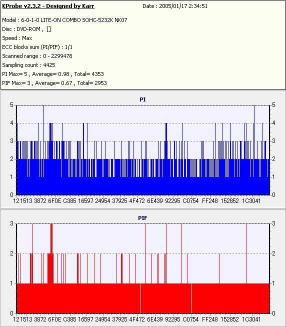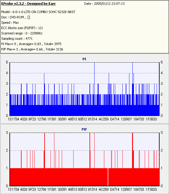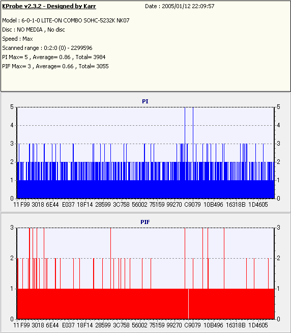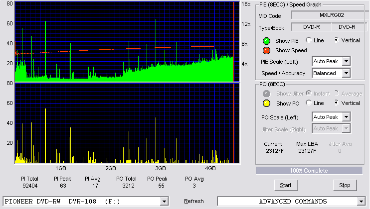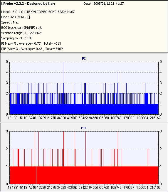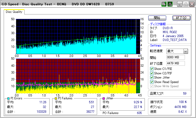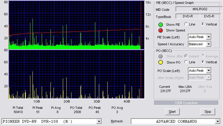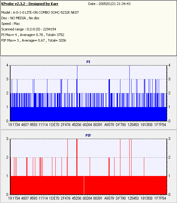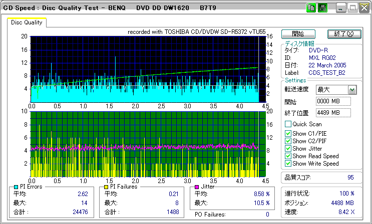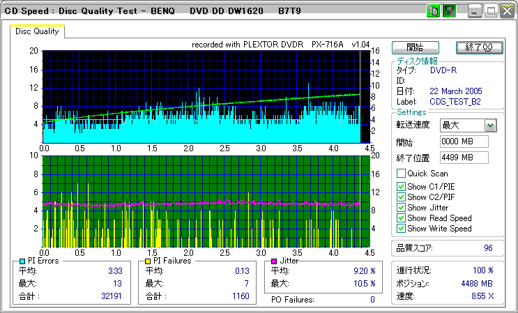 ![]() ![]() 国産maxell4倍。 廉価ながら高品質なメディア。 ただ、GSA-4120BでNeroのグラフがPOFを吐いてしまっている。 他のドライブの結果は間違いなくA級品だが…… GSA-4120Bは太陽誘電の4倍メディアでもPOFを吐いてしまっている為、もしかすると国産メディアが嫌いなのかもしれない。SmartbuyのDVD+R 16xとかは非常に綺麗に焼けているのだが…… |