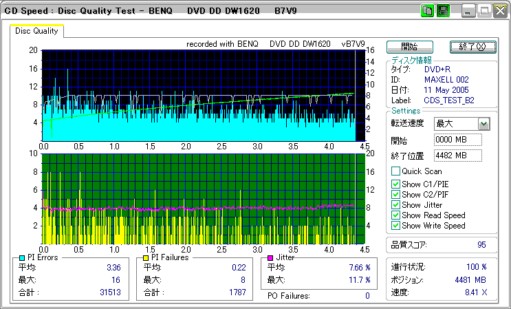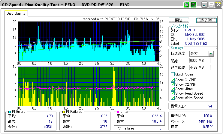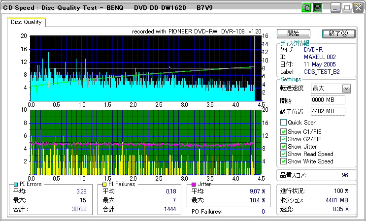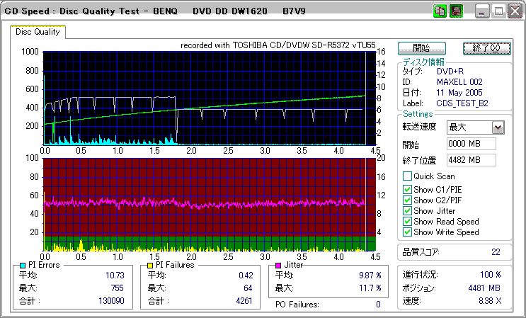 どうにも市場在庫が少ないように思われるmaxellの+R8倍。結果としては微妙な感じ。やはりSD-R5372と相性が悪いのか、単にストラテジを持っていないだけのか。