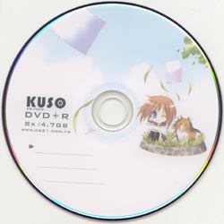 ![]() ![]() ![]() "KUSO"は台湾のメディアで、メディア自体はInfomediaが製造しています。 元々KUSOって言葉は日本語の「糞」を意味するものらしいんですが、それが台湾などに伝わる際に意味が変化したもので、中文的意味としては「くだらなすぎて笑える」みたいな意味を持ってるそうです。どうしてそのような意味へ変化するに至ったのかは諸説ありますが、有力な説としては『クソゲー』という言葉が語源になっているというのが強いみたいです。 KUSO文化は台湾のネット文化や同人誌等と深いつながりがあり、そのせいでこのような萌え系?メディアというものが発生するに至ったのでしょう。っつーか日本でも「萌え」って言葉の由来や語源は不明になってますよね。多分その辺と似たようなもんだと思います。 だからこのメディア、本来の意味こそ違っているものの日本語に訳すと『糞メディア』で間違いないのです。 ![]() ![]() ![]() メディアは各時オフ会にて、越後屋様から頂きました。越後屋様ありがとうございます。