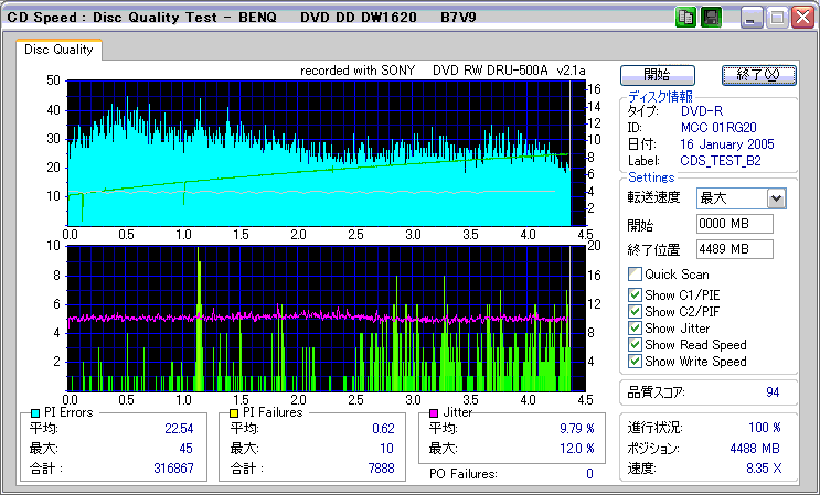 2005.1.8⇒2005.8.7の劣化具合総評。 これは……どうなんでしょう。 DRU-500AとかPX-708A2のようなドライブでは一切問題のない結果に見えるんですが、ND-3500Aなんかだと ちょっとPIEが上昇傾向にあるのが気になります。 問題ないって言えばまあ問題ないんですが。 結論は1〜2年後……でしょうか。 |