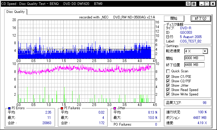 2005.10/20時点での読み出し品質。