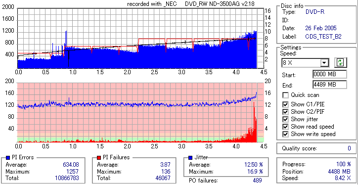 焼いた中でまともな結果になってるのは一つしかなかったんで、ND-3500A分のみ掲載です。 やっぱりというか何と言うか全体的に大きく劣化が見られ、外周部分が死んでました。 |
