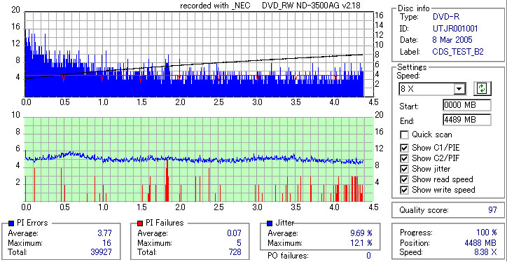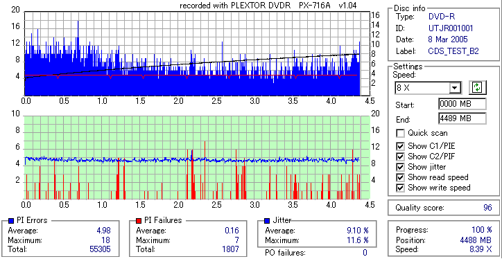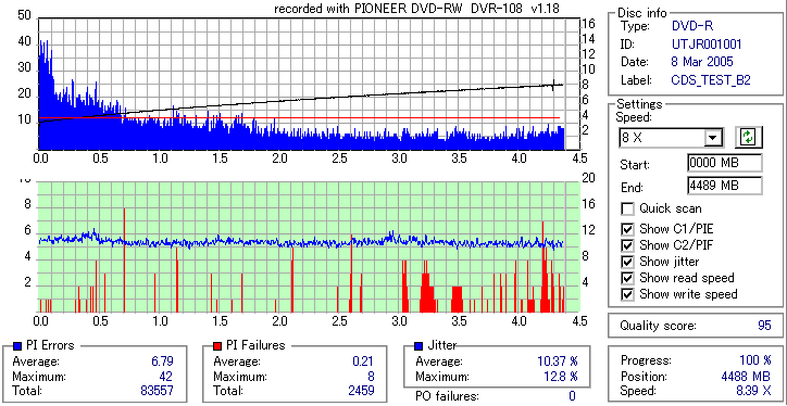 UNIFINOの4倍メディアなんですが、ドライブにより劣化具合に差が出てしまいました。 この個体は内周に若干不安を抱えたロットだったんですが、DVR-108やDW1620等、焼いた時点での内周のエラーが高めだったものは 今回検証した時点での劣化具合も大きく、逆にND-3500AやPX-716A等非常にきれいに焼けていたものに関しては ほとんど劣化という劣化は見られませんでした。 とうも焼いた時点での品質が良いかどうかで劣化のスピードが決まりそうです。 |