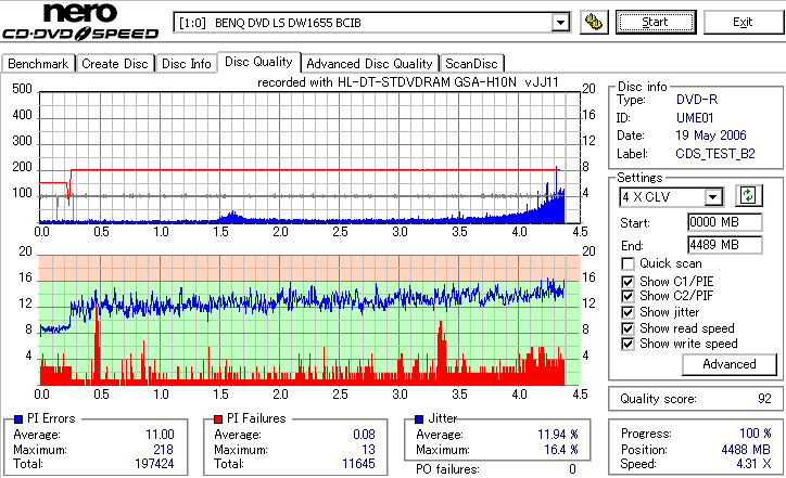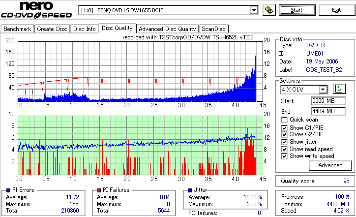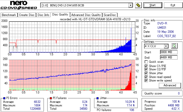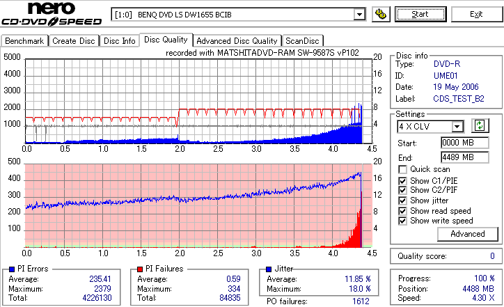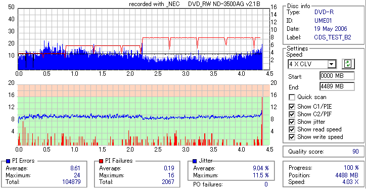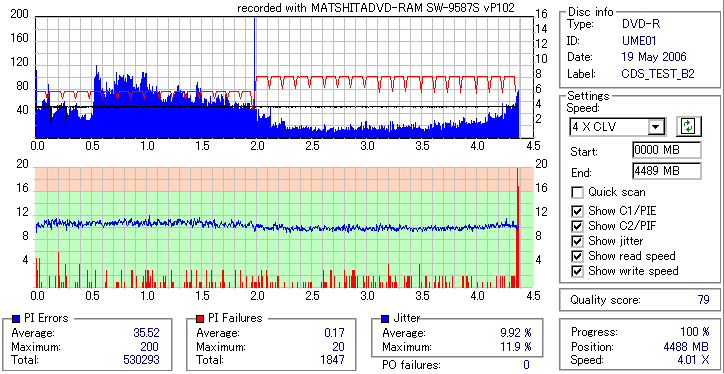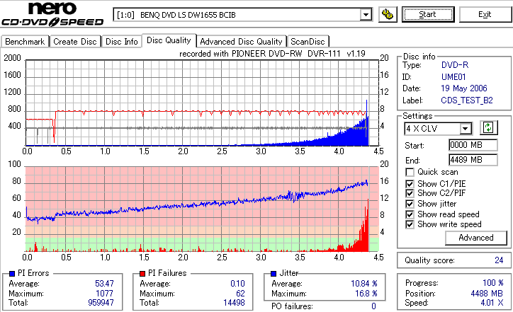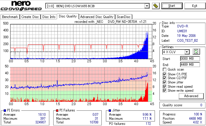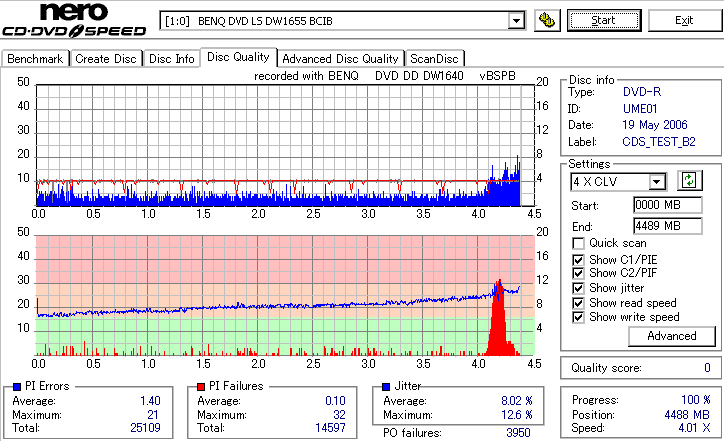 外周部分が大きく劣化。Jitterが16%とかまで達してます。POFは出てないので読めるでしょうけれど。 |