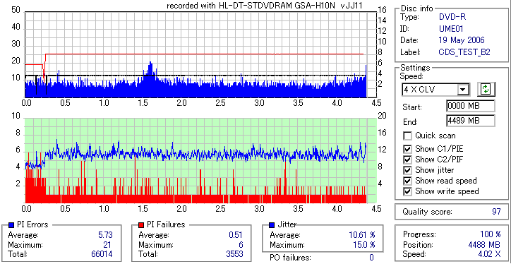 外周に大きくPIFが……出てるのはキズのせいでした。Jitterは上昇してるものの比較的劣化は少ないです。 |