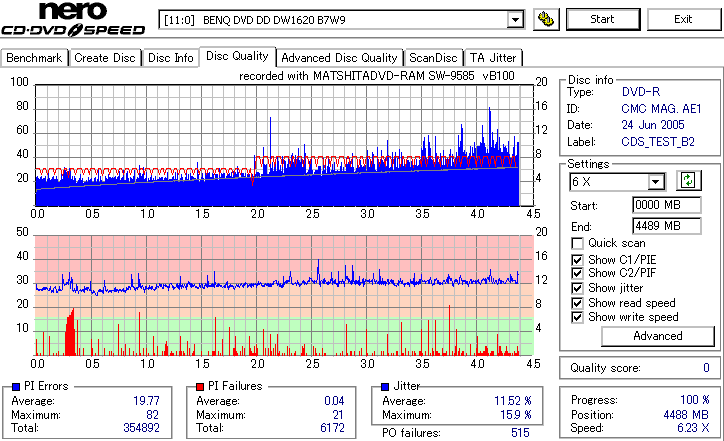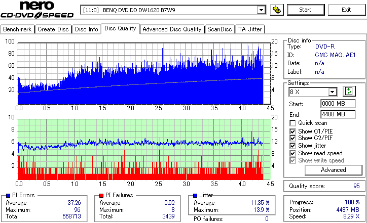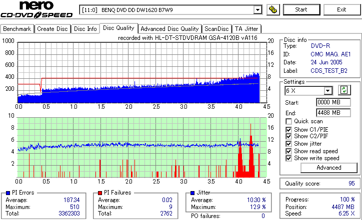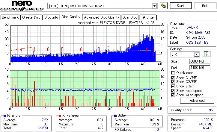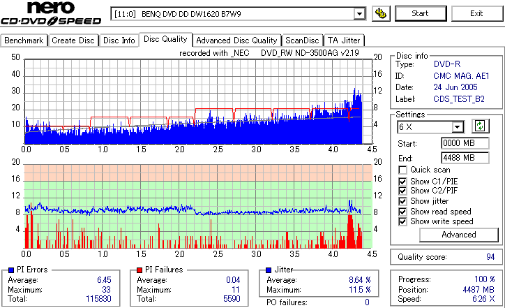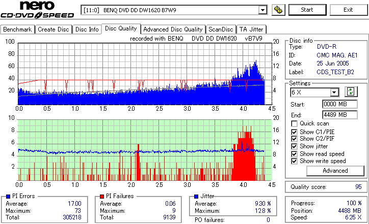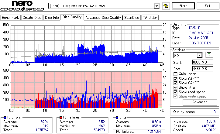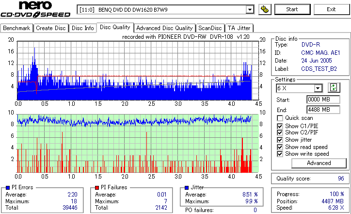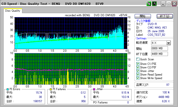 CMCの8倍速メディア。3年後の再計測です。 CMCは古くから当たり外れのあるメディアとして知られていますが、色素は濃厚なAZO系色素を用いており 保存性は海外系メディアの中では比較的良いのではないかと考えられています。 今回の結果では、経年によるごく緩やかな劣化が見て取れたものの、目に見えて大きな劣化はほぼ見られず、 2〜3年程度ではまだそれほど問題ないだろうという感じの結果になりました。 CMCぐっじょぶ。 |