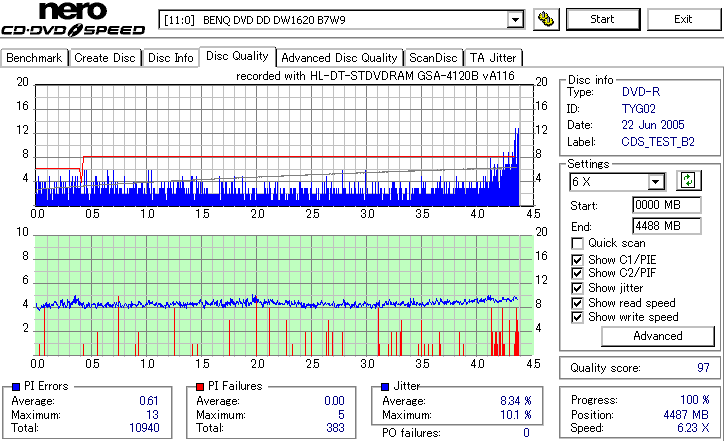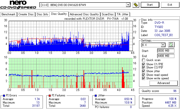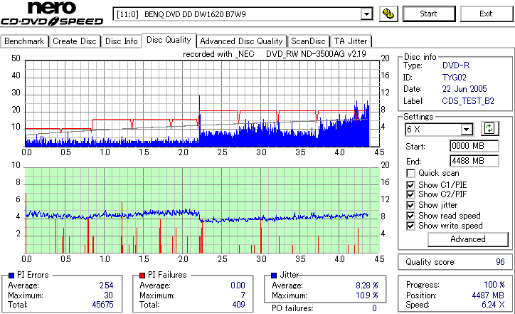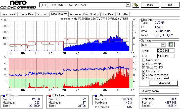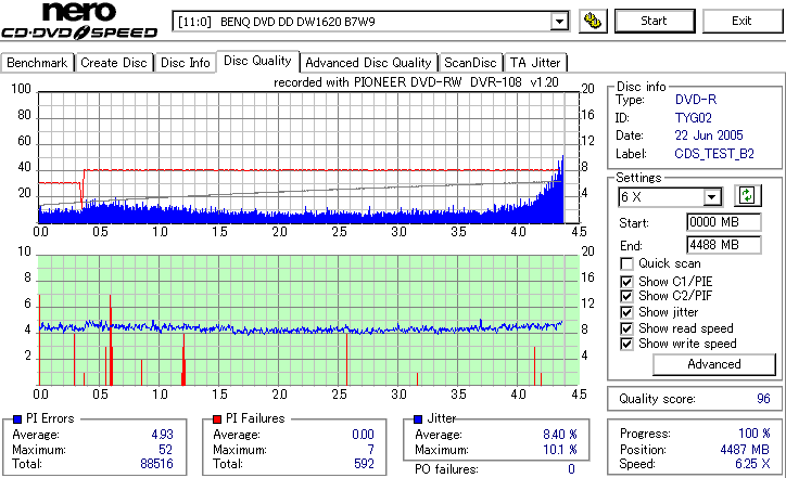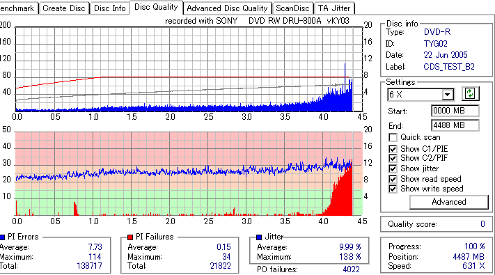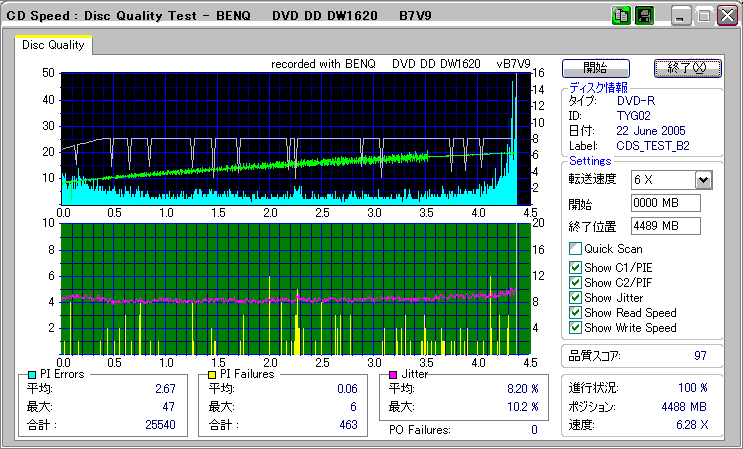Victor8倍、TYG02の3年後の結果です。 さすがに誘電、8倍速盤も3年経っても特に変化はみられません。問題ないでしょう。 |
