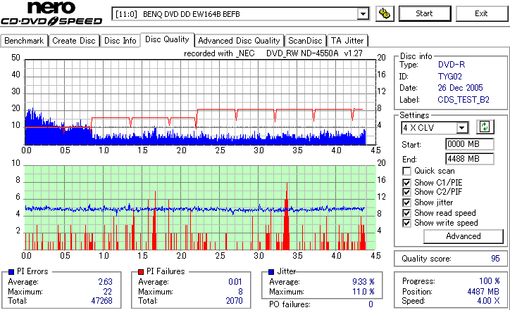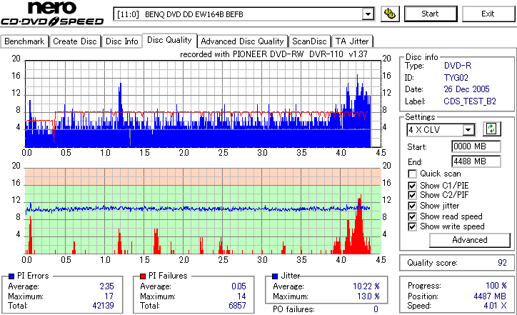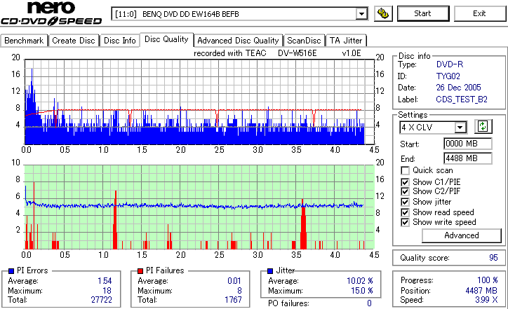 誘電8倍、2年半後の結果です。 深刻な問題が起きているものはとりあえずありません。 エラー値は全体的に緩やかな上昇傾向にあり、このペースだと20〜30年先が少し心配になりそうな感じです。 まあそこまでDVD-Rに保存性を求めるものでもないと思いますが。 |
