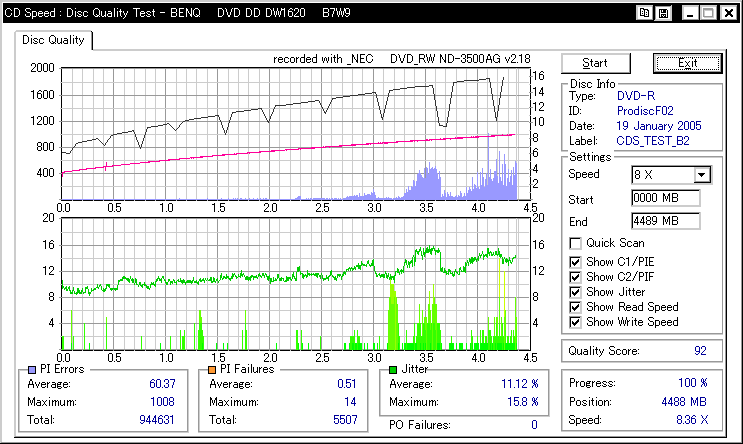 焼き直後の計測結果(DW1620R+CDSpeed)