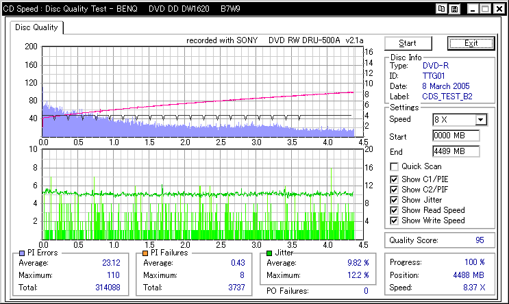 焼き直後の計測結果(DW1620R+CDSpeed)