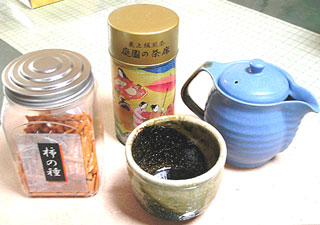こんなのがTOPに貼られてたこともありましたね。柿の種と日本茶大好きなんですよ私。