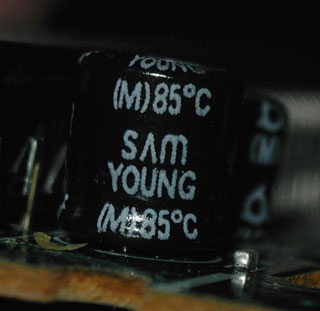 LG版の搭載コンデンサは日立版と異なり、SAMYOUNG製、それも85℃耐熱のものを使用しています。