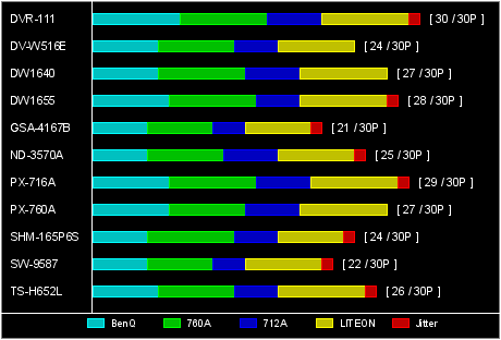 品質評価……A+BenQ 760A 712SA LITEON Jitter Total