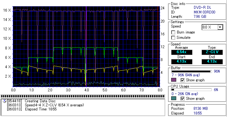 - CDSpeedでのデータディスク作成時の速度グラフ -