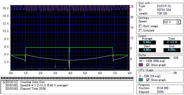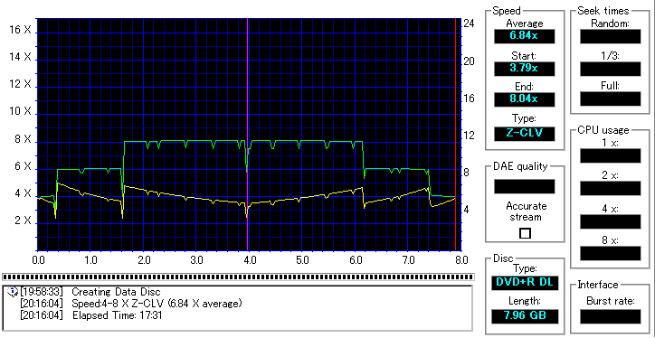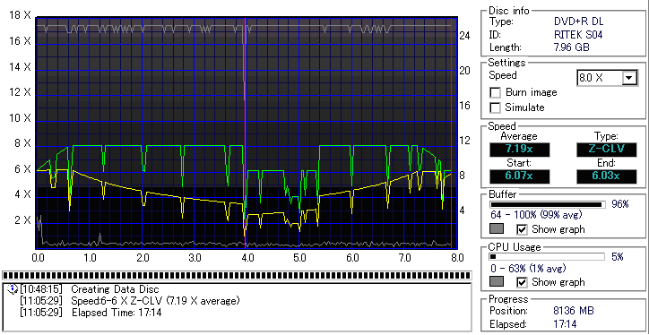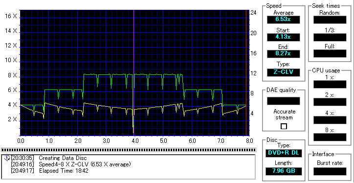 - CDSpeedでのデータディスク作成時の速度グラフ -